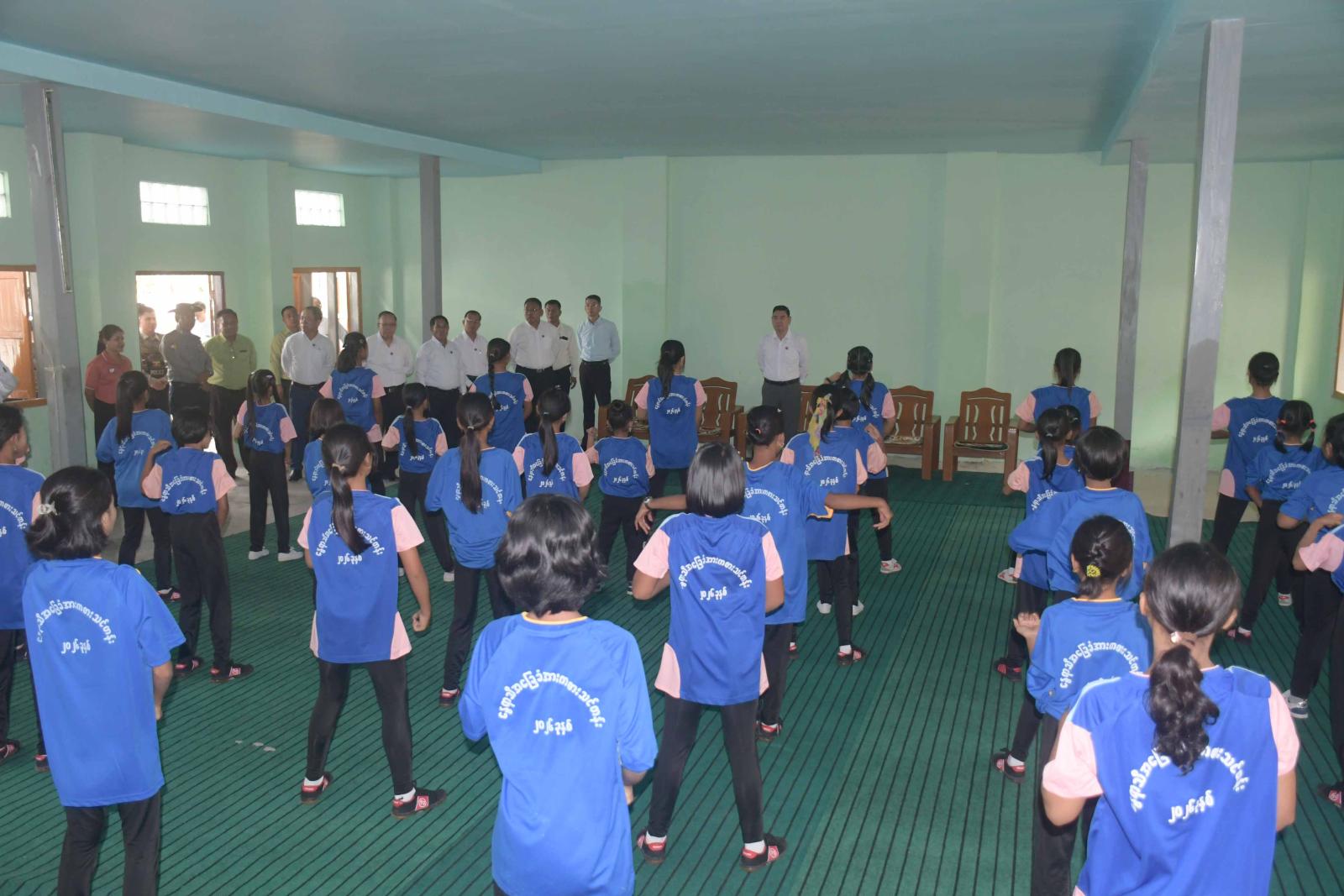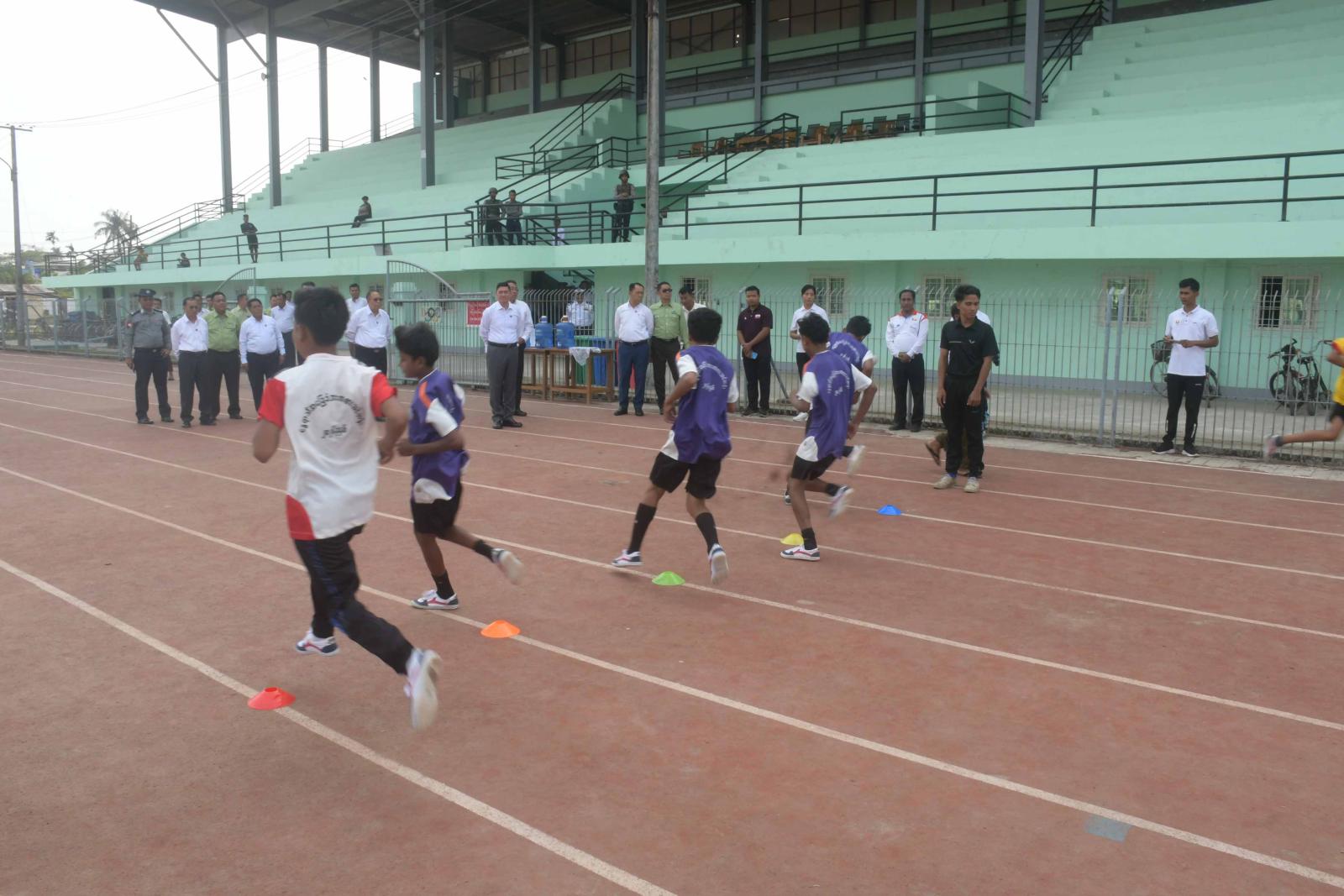 ထို့နောက် ပြည်နယ်ဝန်ကြီးချုပ်နှင့်အဖွဲ့သည် ဓညဝတီအားကစားကွင်း၌ အမျိုးသား၊ အမျိုးသမီး ဘောလုံးသင်တန်းနှင့် ပြေးခုန်ပစ်သင်တန်းဖွင့်လှစ်သင်ကြားနေမှုကို လှည့်လည်ကြည့်ရှုအားပေးကြသည်။ ထိုသို့သွားရောက်ကြည့်ရှုစဉ် ပြည်နယ်ဝန်ကြီးချုပ် ဦးထိန်လင်းက သင်တန်းသား၊ သင်တန်းသူကျောင်းသား၊ ကျောင်းသူများအနေဖြင့် ဗလငါးတန်နှင့်ပြည့်စုံသောလူငယ်များဖြစ်အောင် ကြိုးစားသွား ရမည်ဖြစ် ကြောင်း၊ ကျန်းမာကြံ့ခိုင်သော မျိုးဆက်သစ်အားကစားသမားများ ဖြစ်လာရန်အတွက် မိမိတို့တတ်ကျွမ်းထားသည့် အားကစားနည်းများအလိုက် အမြဲတမ်းလေ့ကျင့်လေ့လာ သင်ကြားနေရမည်ဖြစ်ကြောင်း ပြောကြားသည်။