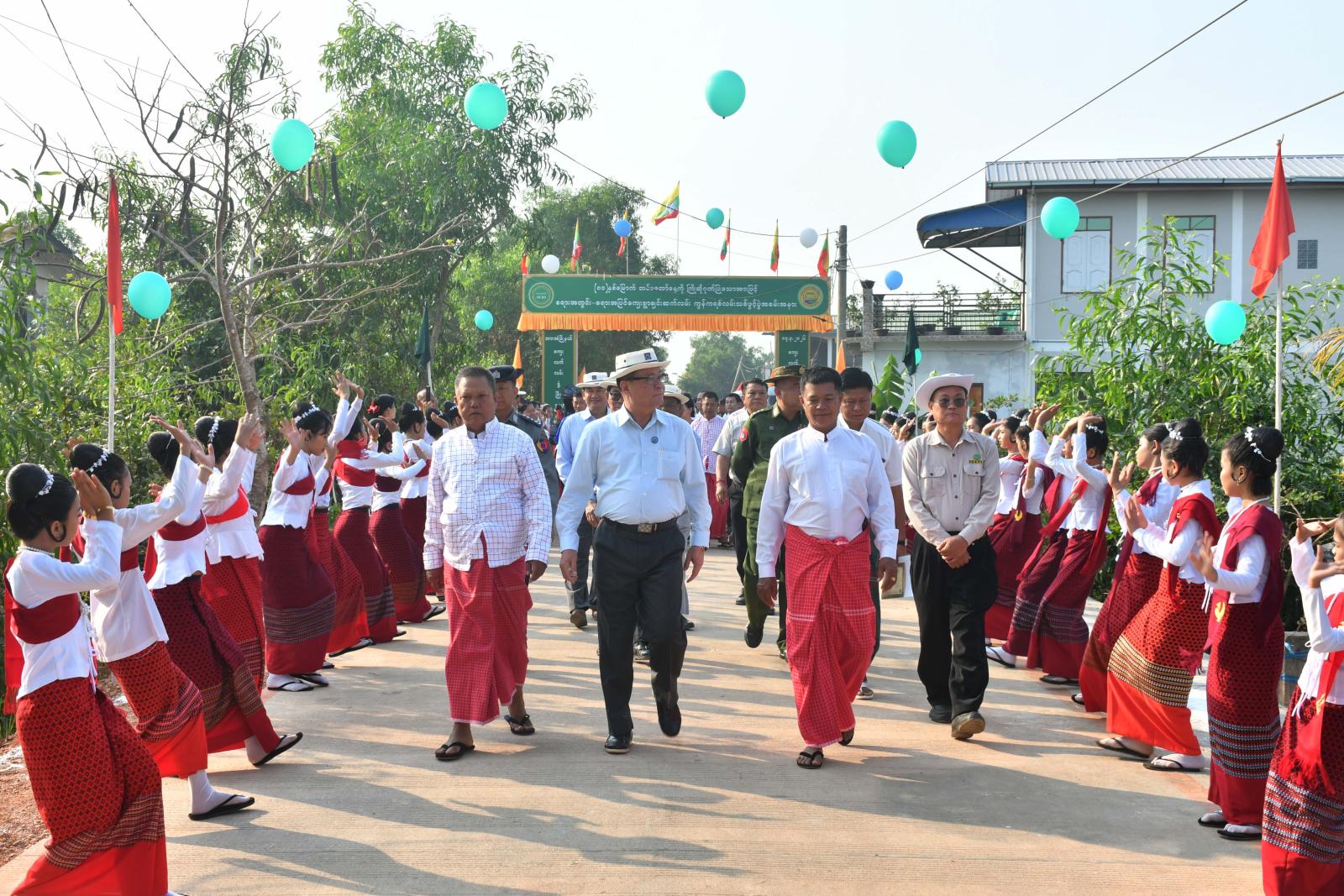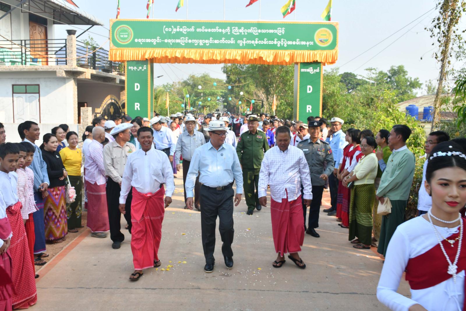 ထို့နောက် ပြည်နယ်ဝန်ကြီးချုပ်နှင့်တာဝန်ရှိသူများသည် ကွန်ကရစ်လမ်းသစ်ဖွင့်ပွဲသို့တက်ရောက်လာသော မွန် ယဉ်ကျေးမှုအဖွဲ့များနှင့်စုပေါင်းမှတ်တမ်းဓာတ်ပုံများရိုက်ကူး၍ ဂုဏ်ပြုဆုများပေးအပ်ချီးမြှင့်ကြပြီး လမ်းသစ်အားဖြတ်သန်းကြည့်ရှုစစ်ဆေးသည်။