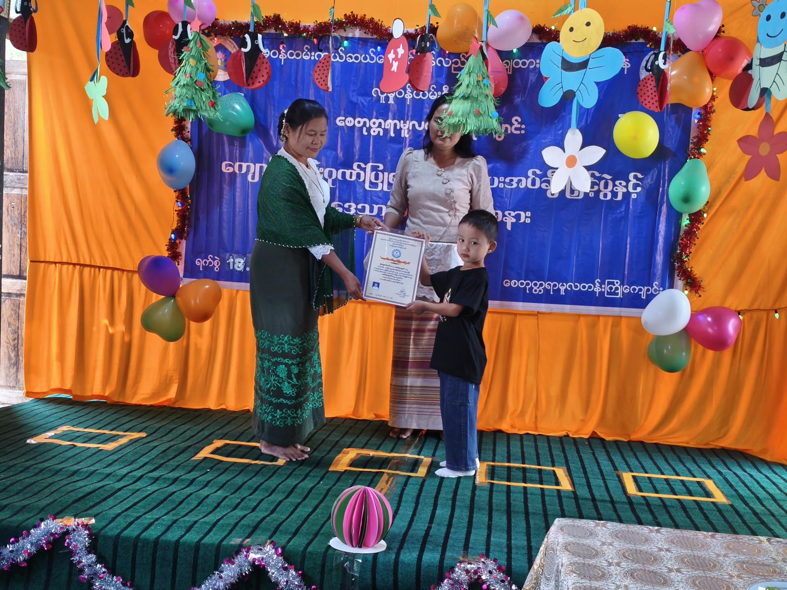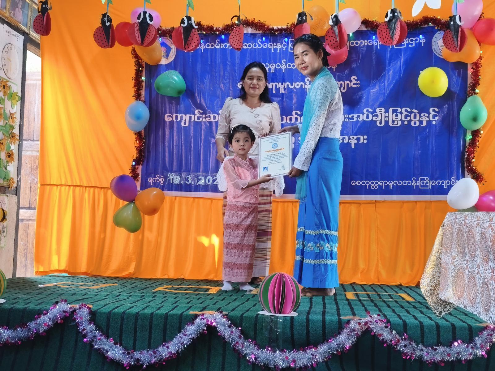 ထို့နောက် တက်ရောက်လာကြသည့် ဌာနဆိုင်ရာအကြီးအကဲများနှင့် တာဝန်ရှိသူများက မူလတန်းကြိုကျောင်းတွင် ကျောင်းဆင်းမည့် ကျောင်းသား/သူတို့အား ကျောင်းဆင်းဂုဏ်ပြုလက်မှတ်များ ချီးမြှင့်ပေးအပ်ခဲ့ပြီး စုပေါင်း၍ အမှတ်တရမှတ်တမ်းဓာတ်ပုံများ ရိုက်ကူးခဲ့ကြသည်။