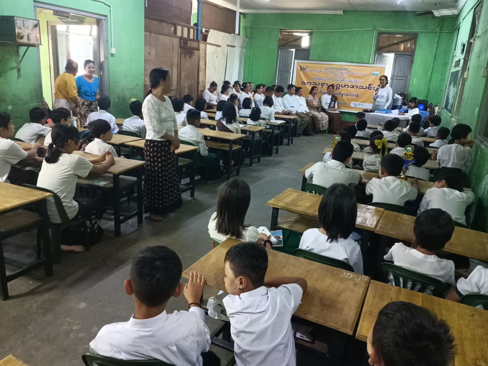 ယင်းနောက် ထန်းနှစ်ပင်ကျောင်းအုပ်ဆရာမကြီးဒေါ် ယဉ်ယဉ်အေးထွန်းက ကျေးဇူးတင်စကားပြန်လည်ပြောကြားသည်။