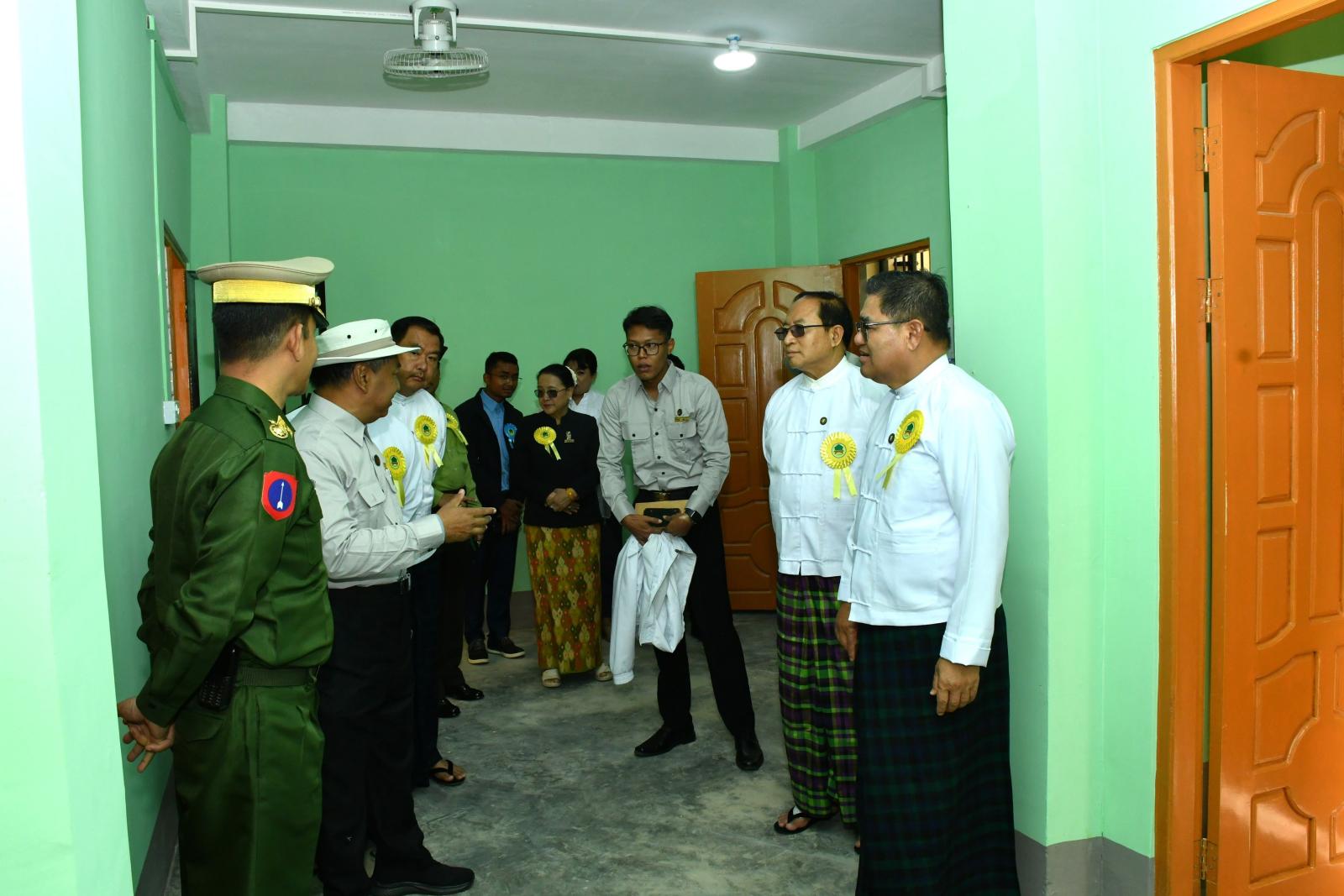 ထို့နောက် အဆောက်အအုံသစ်အား ပြည်နယ်ဝန်ကြီးချုပ်၊ တိုင်းမှူး၊ ပြည်နယ်လမ်းပန်း ဆက်သွယ်ရေးရာဝန်ကြီး၊ ပြည်နယ်တိုင်းရင်းသားရေးရာဝန်ကြီးနှင့် ပြည်နယ်ဦးစီးမှူးတို့က ဖဲကြိုးဖြတ်ဖွင့်လှစ်ပေးကြပြီး (၄)ခန်းတွဲ (၅)ထပ် ဝန်ထမ်းအိမ်ရာ တိုက်အမှတ် (၂၀) အဆောက်အအုံသစ်အား ပြည်နယ်ဝန်ကြီးချုပ်က စက်ခလုတ်နှိပ် ဖွင့်လှစ်ပေးကာ အဆောက်အအုံအား အမွေးနံ့သာရည်များ ပက်ဖျန်းပေးကြပြီး အဆောက်အအုံသစ်အတွင်း ဝန်ထမ်းများနေထိုင်နိုင်ရေးအခန်းများဖြင့် ဖွဲ့စည်းတည်ဆောက်ထားရှိမှု အခြေအနေများအား လှည့်လည်ကြည့်ရှုစစ်ဆေးခဲ့ကြသည်။