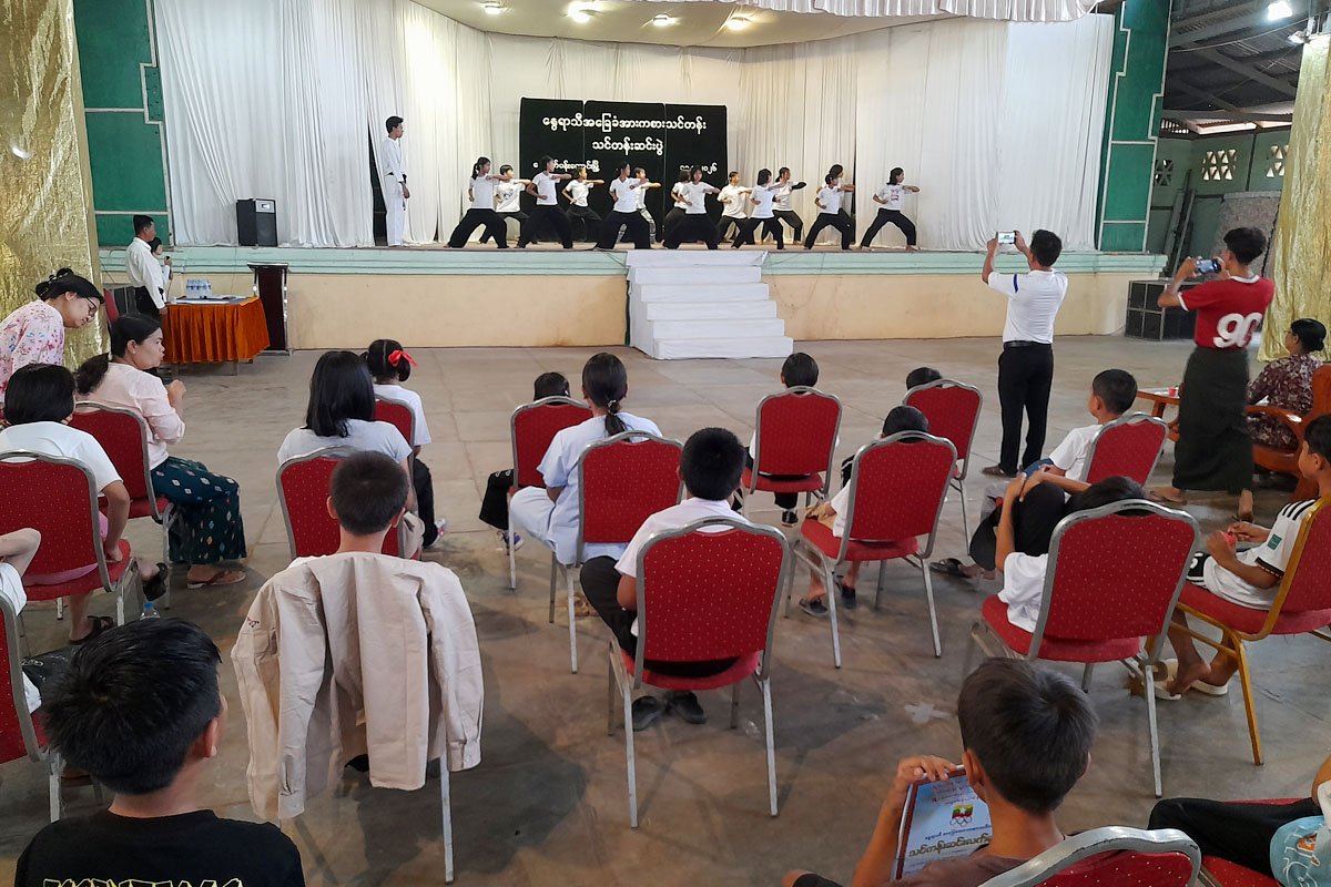 အခမ်အနားတွင် မြို့နယ်အားကစားနှင့်ကာယပညာဦးစီးဌာန မြို့နယ်အားကစားမှူး ဦးအောင်ကိုကိုလတ်က အဖွင့်အမှာစကား ပြောကြားပြီး၊ အားကစားသင်တန်းများတွင် နည်းပြအဖြစ် ဆောင်ရွက်ခဲ့ကြသည့် နည်းပြဆရာများအား ဂုဏ်ပြုလက်ဆောင်များ ပေးအပ်သည်။ ဆက်လက်၍ မြို့နယ်အားကစားမှူးက အခြေခံ ဘောလုံးသင်တန်း၊ အခြေခံ Physical Fitness Dances နှင့် အခြေခံ ကရာတေး သင်တန်း၊ သင်တန်းဆင်းလက်မှတ်များကို သင်တန်းသား ကိုယ်စားလှယ်များထံ ပေးအပ်သည်။ ယင်းနောက် Physical Fitness Dances အဖွဲ့နှင့် ကရာတေးသင်တန်းသား အဖွဲ့ဝင်များက သရုပ်ပြ ကစားကြပြီး အခမ်းအနားကို ရုပ်သိမ်းလိုက်သည်။