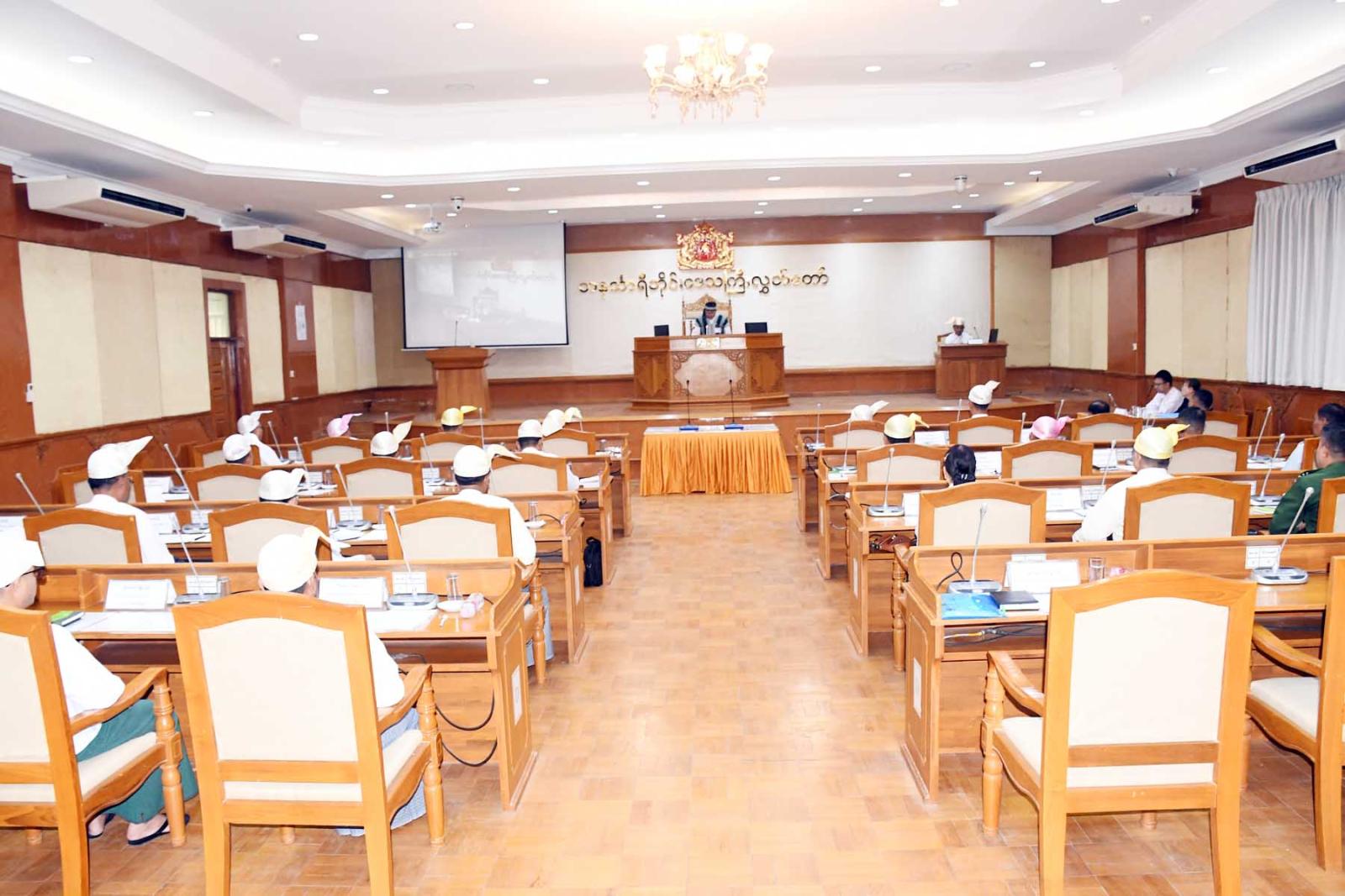 အစည်းအဝေးတွင် တိုင်းဒေသကြီးလွှတ်တော်ကိုယ်စားလှယ်များက ကရင်တိုင်းရင်းသား လူမျိုးလွှတ်တော်ကိုယ်စားလှယ် စောမာတင်လူသာအား သဘာပတိအဖြစ် တင်မြှောက်ခဲ့ကြပြီး လွှတ်တော်တွင် သဘာပတိက နှုတ်ခွန်းဆက်စကား ပြောကြားသည်။