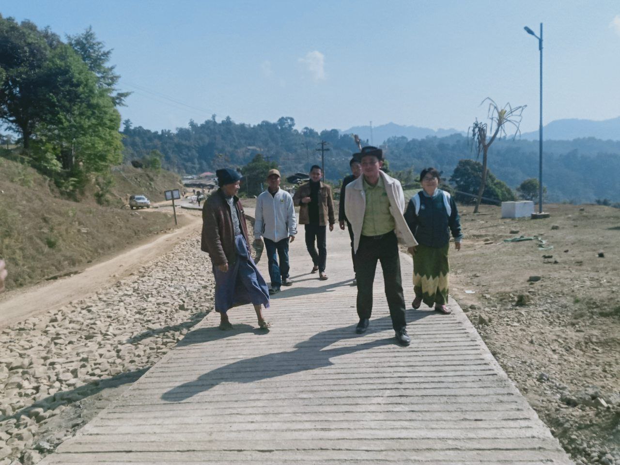 စစ်ကိုင်းတိုင်းဒေသကြီး၊ နာဂကိုယ်ပိုင်အုပ်ချုပ်ခွင့်ရဒေသ၊ ပန်ဆောင်မြို့ လမ်းဦးစီးဌာန၏ ၂၀၂၅-၂၀၂၆ ဘဏ္ဍာရေးနှစ် ရန်ပုံငွေဖြင့် ပန်ဆောင်မြို့ဈေးရှေ့၌ ကွန်ကရစ်လမ်းခင်းနေမှုများကို သက်ဆိုင်ရာ တာဝန်ရှိသူများက ယနေ့ နံနက်ပိုင်းက ကွင်းဆင်းစစ်ဆေးခဲ့သည်။