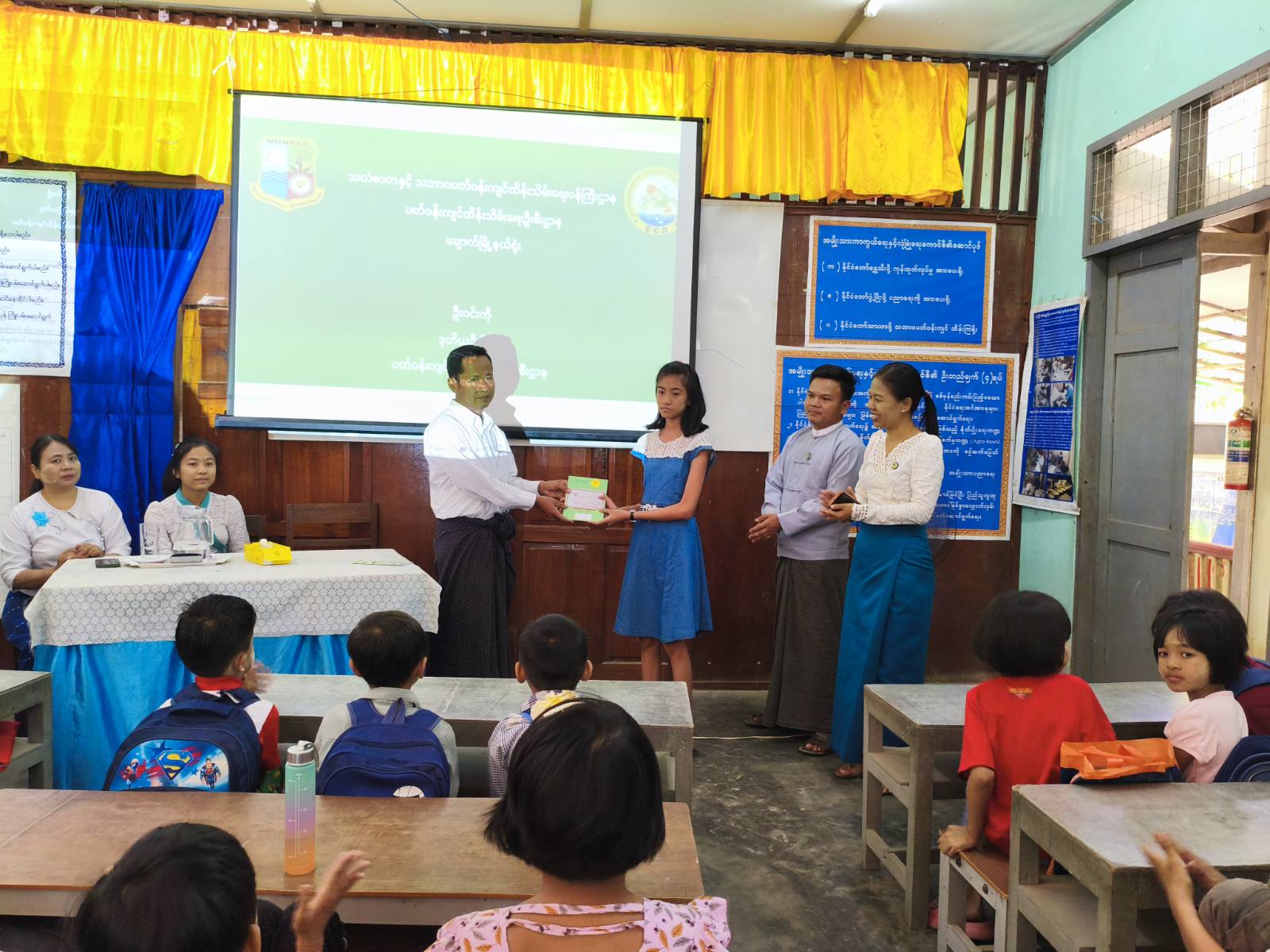 ထိုနောက် မြို့နယ်ပတ်ဝန်းကျင်ထိန်းသိမ်းရေးဦးစီးဌာန၊ ဒုတိယဦးစီးမှူး ဦးဝင်းကိုကပန်းချီသင်တန်းတွင် အကောင်းဆုံးရေးဆွဲနိုင်သည့် ကျောင်းသား/ကျောင်းသူများအား မေတ္တာလက်ဆောင်စာအုပ်များပေးအပ်ခဲ့ပြီး "မမြင်နိုင်သောလူသတ်သမား p.m2.5" video ပြသ၍ သင်တန်းတက်ရောက်နေသည့် ကျောင်းသား/ကျောင်းသူများအား ရေချိုသယံဇာတထိန်းသိမ်းရေးအသိပညာ ပေးလက်ကမ်းစာစောင်များကို ဖြန့်ဝေပေးအပ်ခဲ့သည်။ အဆိုပါဟောပြောပွဲသို့ နွေရာသီပန်းချီသင်တန်းတက်ရောက်သည့် ကျောင်းသား/ကျောင်းသူ (၃၅)ဦး တက်ရောက်ခဲ့ကြောင်း သိရ သည်။