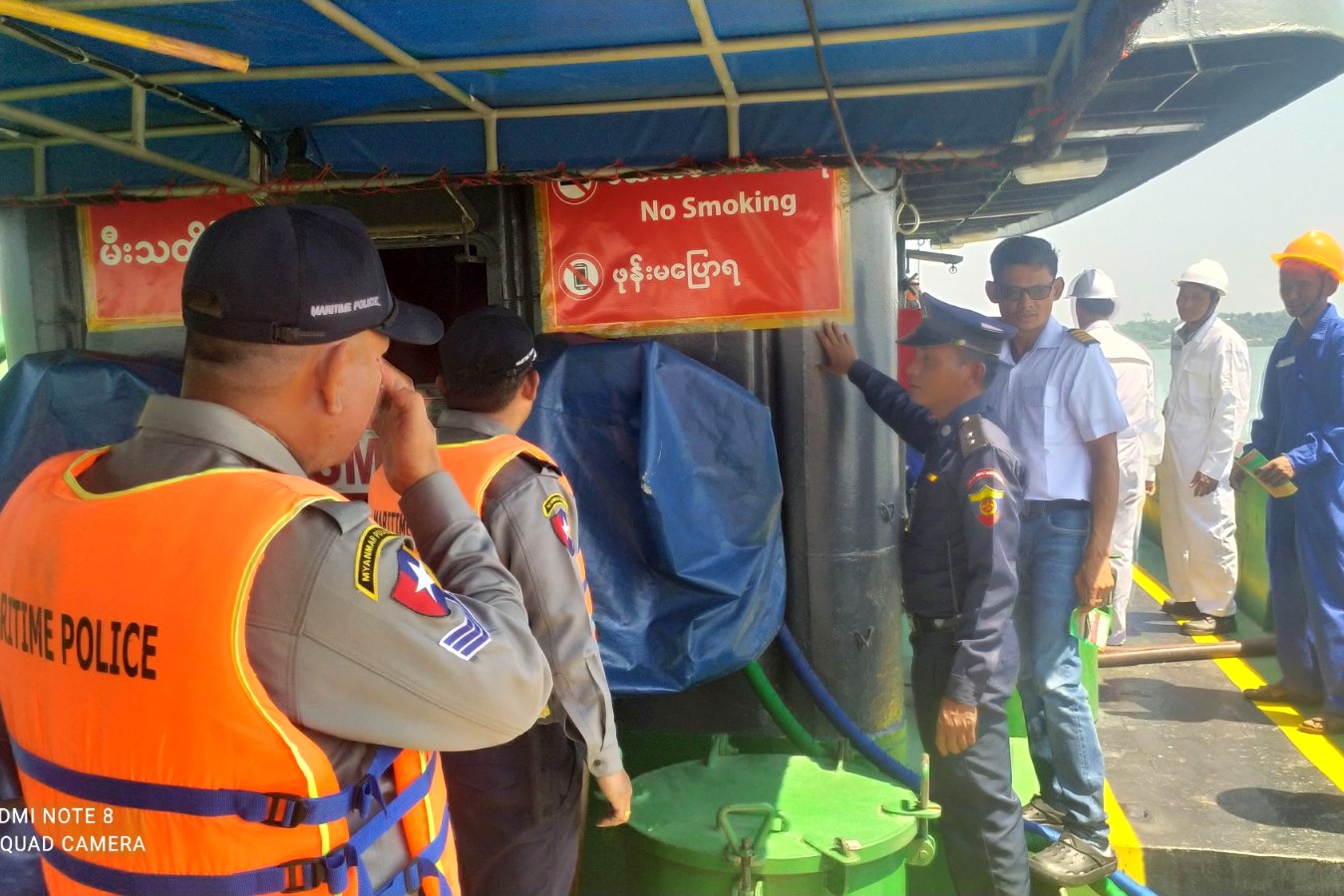 ထိုသို့ဆောင်ရွက်ရာတွင် ကော့သောင်းခရိုင်/မြို့နယ်မီးသတ်ဦးစီးဌာနမှ ဒုမီးသတ်ဦးစီးမှူး ဦးချစ်မင်းသူဦးဆောင်သော မီးသတ်တပ်ဖွဲ့ဝင်များ၊ ရေကြောင်းရဲတပ်ဖွဲ့မှ ဒုရဲအုပ်အောင် မျိုးသက်နှင့် တပ်ဖွဲ့ဝင်များက မီးလောင်မှုဖြစ်ပေါ်စေသည့် အကြောင်းအရင်းများ၊ မီးဘေးအန္တရာယ်ဖြစ်ပေါ်လာပါက စနစ်တကျ မးငြှိမ်းသတ်ရမည့် နည်းလမ်းများနှင့် မီးဘေးအန္တရာယ်ကြိုတင်ကာကွယ်ရေး အသိပညာပေးဟောပြောခဲ့ကြပြီး ကုန်တင်သင်္ဘောများ၊ ငါးဖမ်းသင်္ဘောများအား မီးဘေးလုံခြုံရေးနှင့် ကြိုတင်ကာကွယ်ရေး ဆောင်ရွက်ထားရှိမှုအခြေအနေများ၊ မီးသတ်ဆေးဘူးများ တပ်ဆင်ထားရှိမှုအခြေအနေများအား ကြည့်ရှုစစ်ဆေး၍ လိုအပ်သည်များ လမ်းညွှန်မှာကြားခဲ့ကြောင်း သိရသည်။