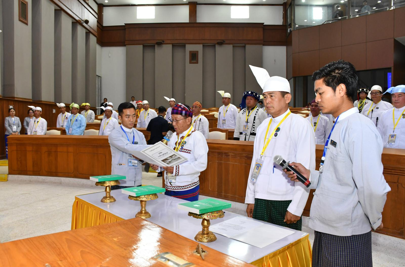 ထို့နောက် သဘာပတိက တတိယအကြိမ် ကချင်ပြည်နယ်လွှတ်တော် ပထမပုံမှန်အစည်းအဝေးပထမနေ့ စတင်ကြောင်းကြေညာပြီး လွှတ်တော်ကိုယ်စားလှယ်များက ကတိသစ္စာပြုခြင်းနှင့် ကတိသစ္စာပြုလွှာပေါ်တွင် လက်မှတ်ရေးထိုးခဲ့ကြသည်။