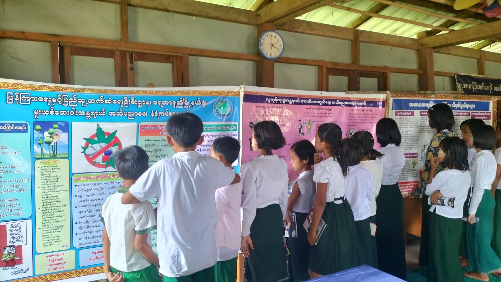 အဆိုပါပြပွဲတွင် ပြန်ကြားရေးနှင့်ပြည်သူ့ဆက်ဆံရေးဦးစီးဌာန ဦးစီးအရာရှိ ဒေါ်သော်ဇင်အောင်က စာဖတ်ခြင်းအကျိုးကျေးဇူးများအကြောင်း ဟောပြောခဲ့ပြီး သုတ/ရသ စာအုပ်များအပြင် ကလေးစာပေများဖြင့် ပညာရပ်စုံလင်စွာ ခင်းကျင်းပြသထားပြီး နံရံကပ် စာစောင်ပြပွဲ၌ မူးယစ်ဆေးဝါးအန္တရာယ်အသိပညာပေးနံရံကပ်စာစောင်ဖြင့် ခင်းကျင်းပြသခဲ့ရာ ကျောင်းသူ၊ ကျောင်းသားများက စိတ်ပါဝင်စားစွာဖြင့် လေ့လာကြည့်ရှုခဲ့ကြောင်း သိရသည်။