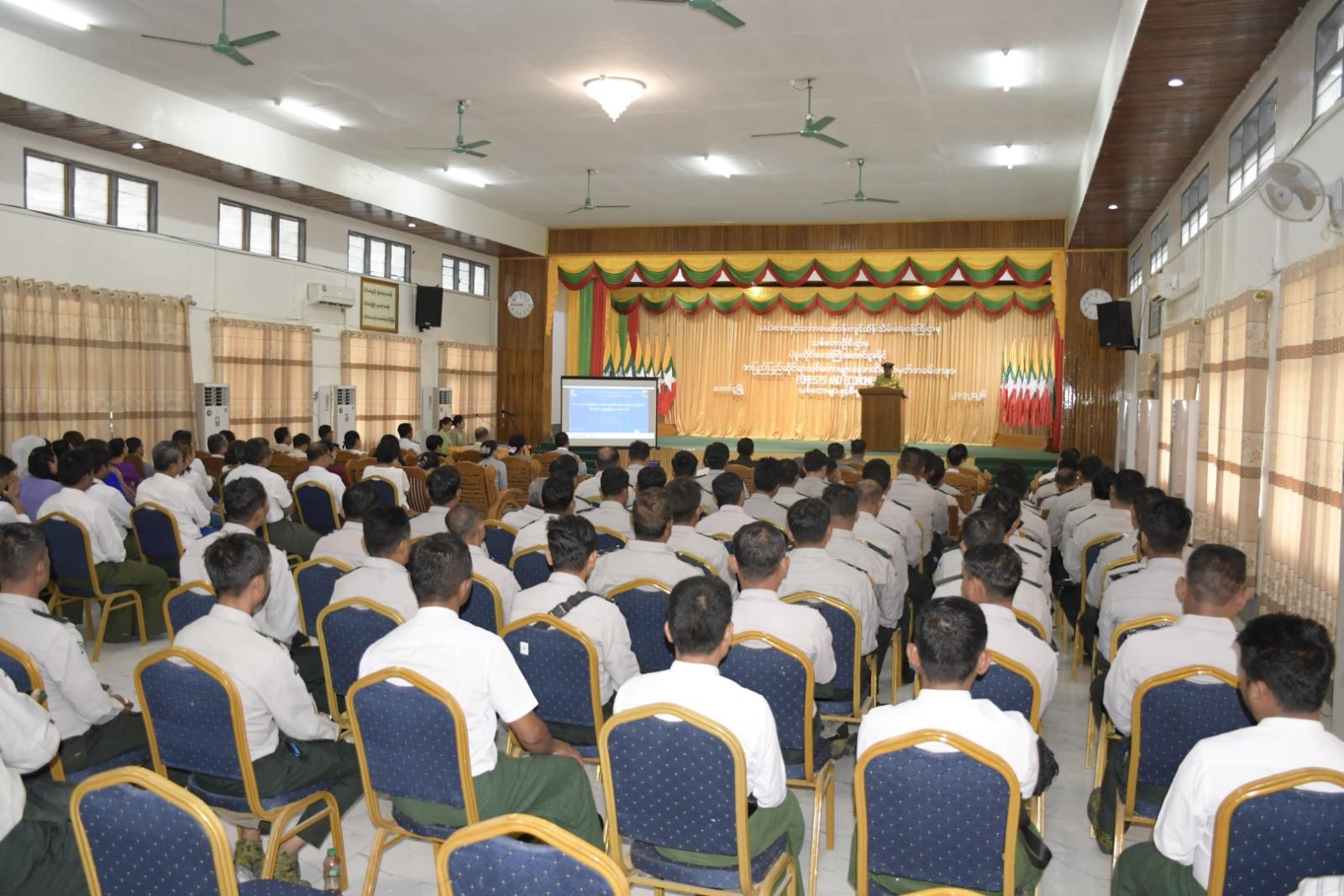 ဦးစွာ တောင်ငူခရိုင်စီမံခန့်ခွဲရေးနှင့်အုပ်ချုပ်ရေးကော်မတီဥက္ကဋ္ဌ ဦးစောထွန်းဦးက အပြည်ပြည်ဆိုင်ရာသစ်တောများနေ့ ဂုဏ်ပြုအမှာစကားပြောကြားသည်။ ထို့နောက် တောင်ငူခရိုင်သစ်တောဦးစီးဌာနမှ လက်ထောက်ညွှန်ကြားရေးမှူး ဦးကျော်ကျော်အောင်က “သဘာဝအရင်းအနှီးဖြစ်သော သစ်တောများကို စနစ်တကျစီမံအုပ်ချုပ်ခြင်းဖြင့် နိုင်ငံ့စီးပွားရေရှည်ဖွံ့ဖြိုးရေး ဖော်ဆောင်စို့” ခေါင်းစဥ်ဖြင့် သစ်တော၊ ဂေဟစနစ်ဝန်ဆောင်မှုနှင့် နိုင်ငံ့စီးပွားဖွံ့ဖြိုးမှုအကြောင်း၊ သစ်တောသယံဇာတအရင်းအမြစ်များ ပျံ့နှံ့တည်ရှိမှု၊ နိုင်ငံ့စီးပွားဖွံ့ဖြိုးမှု အထောက်အပံ့များ၊ မြန်မာနိုင်ငံ၏ စီးပွားရေးတွင် သစ်တော၏ အခန်းကဏ္ဍ၊ ကုန်ထုတ်လုပ်မှု (သစ်နှင့် သစ်မဟုတ်သော သစ်တောထွက်ပစ္စည်းများထုတ်လုပ်မှု)၊ သစ်တောများနှင့် အောက်ဆီဂျင်ထုတ်လုပ်မှု၊ သစ်တောများနှင့် ရေချိုအရင်းအမြစ်၊ ရာသီဥတုပြောင်းလဲမှုအခန်းကဏ္ဍနှင့် သဘာဝဘေးအန္တရာယ် လျော့ပါးလာမှု၊