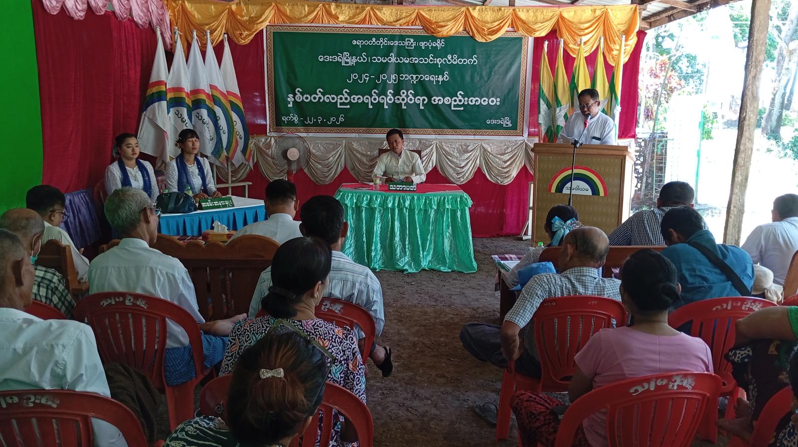 အခမ်းအနားတွင် မြို့နယ်သမဝါယအသင်းစုလီမီတက် သဘာပတိ ဦးအောင်အောင်က အဖွင့်အမှာစကားပြောကြားခြင်း၊ တိုင်းဒေသကြီးသမဝါယမဦးစီးဌာန၊ လက်ထောက်ညွှန်ကြားရေးမှူး ဦးဇော်ဝင်းက လုပ်ငန်းဆိုင်ရာများ လမ်းညွှန်မှာကြားခြင်းနှင့် မြို့နယ်သမဝါယမဦးစီးဌာနမှူး ဒေါ်စိုစိုးညွန့်က ဆက်လက်ဆောင်ရွက်သွားမည့် လုပ်ငန်းဆိုင်ရာများအား ရှင်းလင်းဆွေးနွေးခဲ့သည်။ ထို့နောက် မြို့နယ်သမဝါယမအသင်းစု ဒါရိုက်တာအဖွဲ့ အစီရင်ခံစာ၊ အသင်းစု စာရင်းစစ် အစီရင်ခံစာနှင့် နှစ်ချုပ်ဘဏ္ဍာရေး အစီရင်ခံစာများအား တာဝန်ရှိသူများက အသီးသီးဖတ်ကြားတင်ပြခဲ့ပြီး တက်ရောက်လာသည့် အသင်းစုအဖွဲ့ဝင်များ၏ အတည်ပြုချက်ရယူခဲ့ပြီး အခမ်းအနားအား ပိတ်သိမ်းခဲ့ကြောင်း သိရသည်။
