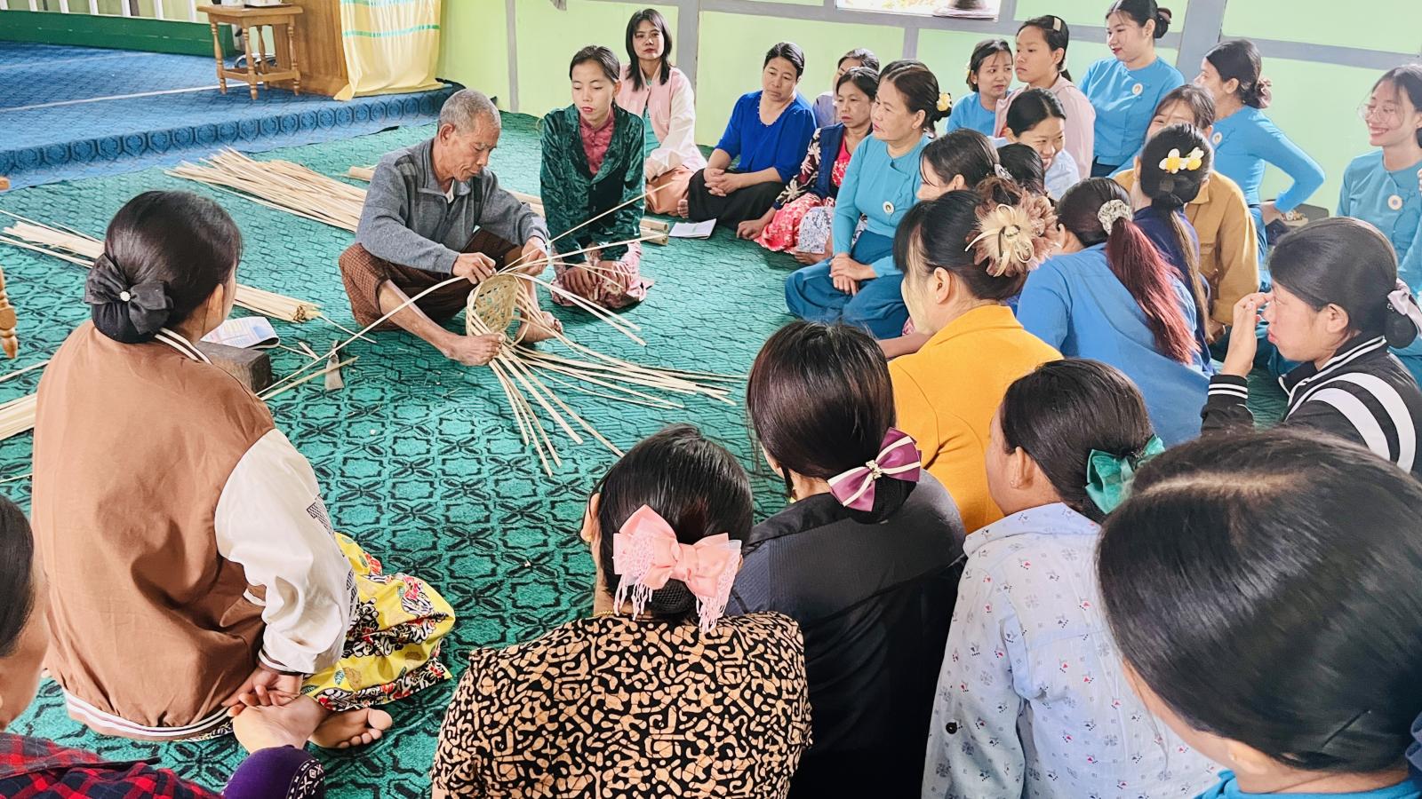 အဆိုပါသင်တန်းတွင် ခြင်းတောင်းယက်လုပ်ပုံ အဆင့်ဆင့်ကို နည်းစနစ်တကျသင်ကြားပြသရာ တက်ရောက်လာကြသည့် အမျိုးသမီးသင်တန်းသူ(၂၀)ဉီးက စိတ်ပါဝင်စားစွာ လေ့လာကြည့်ရှုခဲ့ပြီး မိမိတို့ကိုယ်တိုင် ခြင်းတောင်းများ ယက်လုပ်ခဲ့ကြသည်။