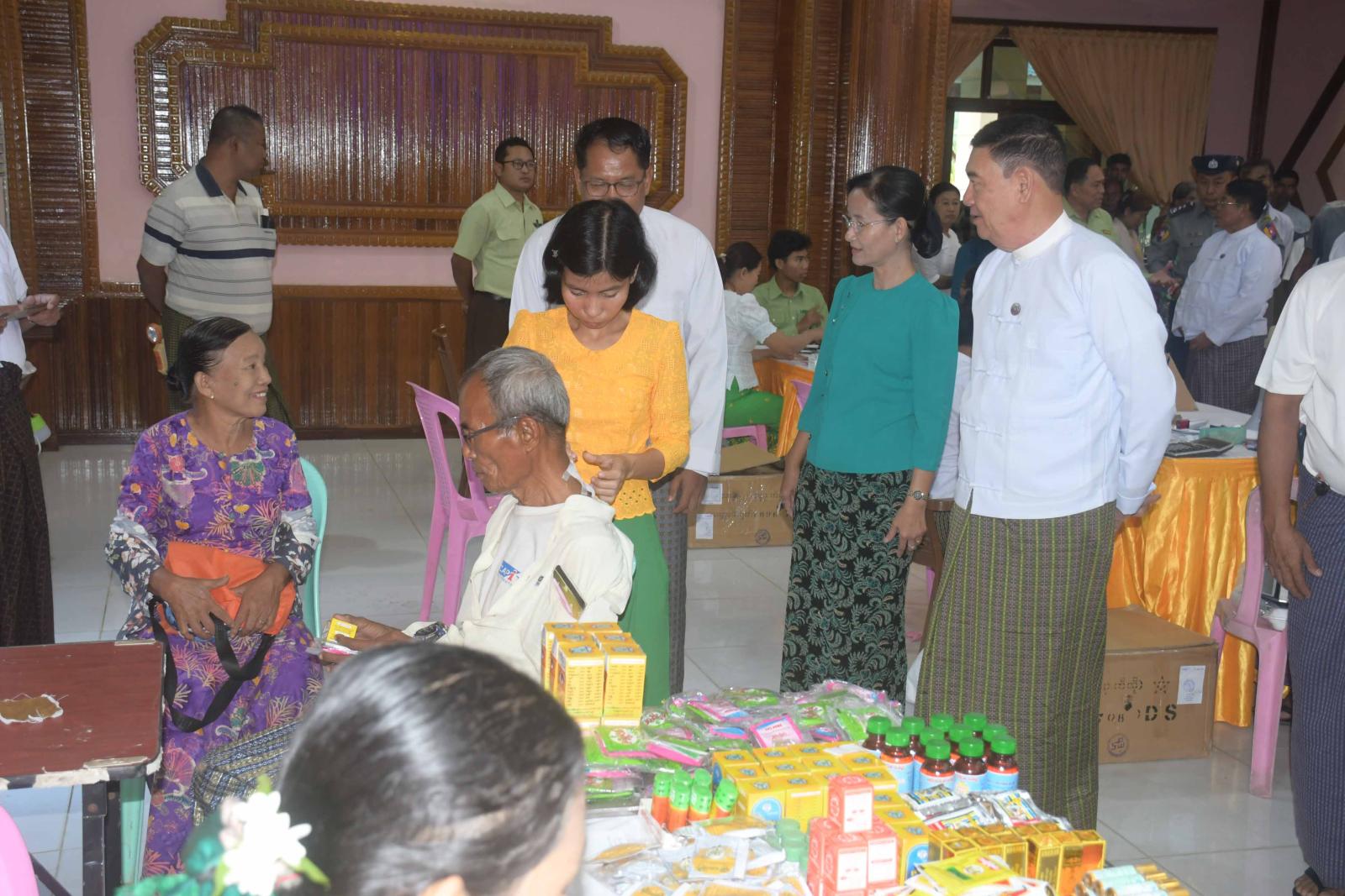အငြိမ်းစားဝန်ထမ်းများအား ပင်စင်လစာထုတ်ပေးခြင်း၊ ကျန်းမာရေးစောင့်ရှောက်မှုပေးခြင်းနှင့် ချီးမြှင့်ပေးအပ်ခြင်း ဆောင်ရွက်ရာတွင် ခုတင် ၅၀၀ ဆံ့ အထွေထွေရောဂါကုဆေးရုံကြီးမှ သမားတော်ကြီးများ၊ အထူးကုဆရာဝန်ကြီးများနှင့် ကျန်းမာရေးဝန်ထမ်းများက သွေးပေါင်ချိန် တိုင်းတာပေးခြင်း၊ သွေးအတွင်း အောက်ဆီဂျင်ပါဝင်မှု တိုင်းတာပေးခြင်း၊ ဆီးချို၊ သွေးချိုစစ်ဆေးပေးခြင်း၊ နှလုံးရောဂါစစ်ဆေးခြင်းနှင့် အီးစီဂျီရိုက်ပေးခြင်းများကို ဆောင်ရွက်ပေးကြပြီး လိုအပ်သော ဆေးဝါးများကိုလည်း အခမဲ့ထုတ်ပေးကြသည်။ အလားတူ တိုင်းရင်းဆေးပညာဦးစီးဌာနမှ ပြည်နယ် ဦးစီးမှူးနှင့် ဝန်ထမ်းများကလည်း အငြိမ်းစား ဝန်ထမ်းများအား တိုင်းရင်းဆေးဝါးများနှင့် ကုသပေးခြင်းများကို ဆောင်ရွက်ပေးကြပြီး တိုင်းရင်းဆေးများကို အခမဲ့ချီးမြှင့်ပေးအပ်ခဲ့ကြသည်။