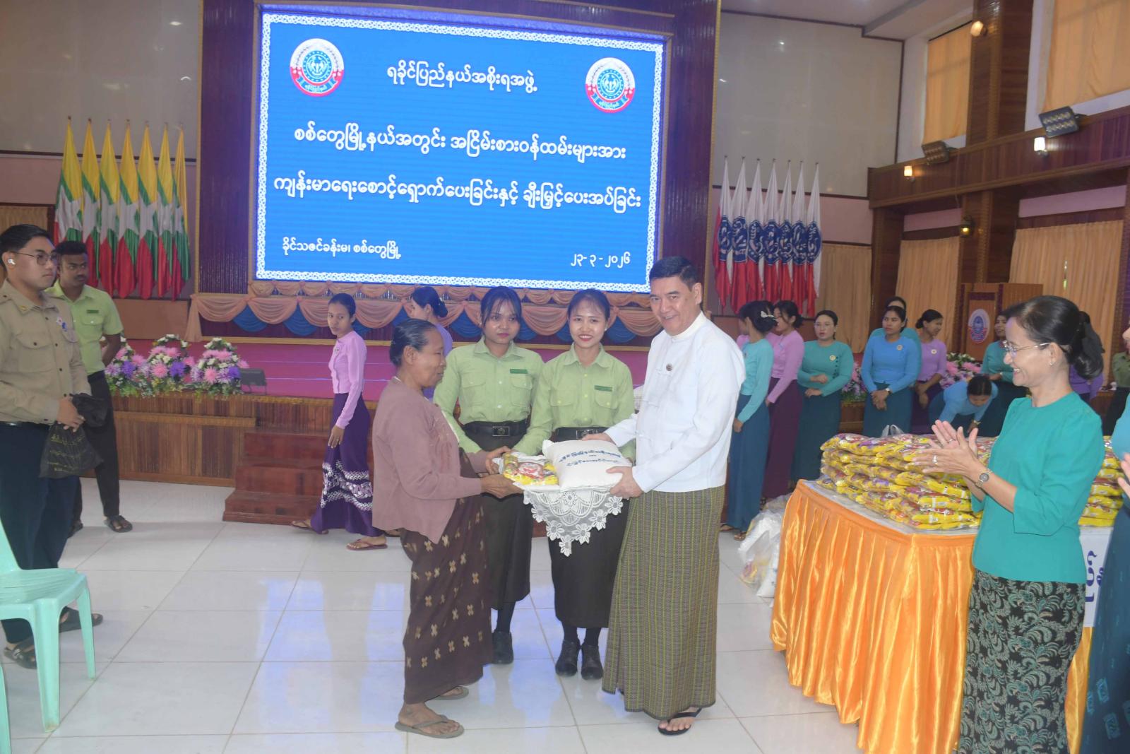 စစ်တွေမြို့နယ်အတွင်း အငြိမ်းစားဝန်ထမ်းများအား ပင်စင်လစာထုတ်ပေးခြင်း၊ ကျန်းမာရေးစောင့်ရှောက်မှုပေးခြင်းနှင့် ချီးမြှင့်ပေးအပ်ခြင်းကို ယနေ့နံနက်ပိုင်းက စစ်တွေမြို့၊ ခိုင်သဇင်ခန်းမ၌ကျင်းပရာ ရခိုင်ပြည်နယ်ဝန်ကြီးချုပ် ဦးထိန်လင်းနှင့်ဇနီး ပြည်နယ်အမျိုး သမီးရေးရာအဖွဲ့နာယက ဒေါ်ဆွေဆွေမြတ်၊ ပြည်နယ်တရားလွှတ်တော် တရားသူကြီးချုပ်၊ ပြည်နယ်အစိုးရအဖွဲ့ဝင်များနှင့်ဇနီးများ၊ ဌာနဆိုင်ရာများနှင့် လူမှုရေးအဖွဲ့အစည်းများမှ ကိုယ်စားလှယ်များ တက်ရောက်ကြည့်ရှု အားပေးကြသည်။