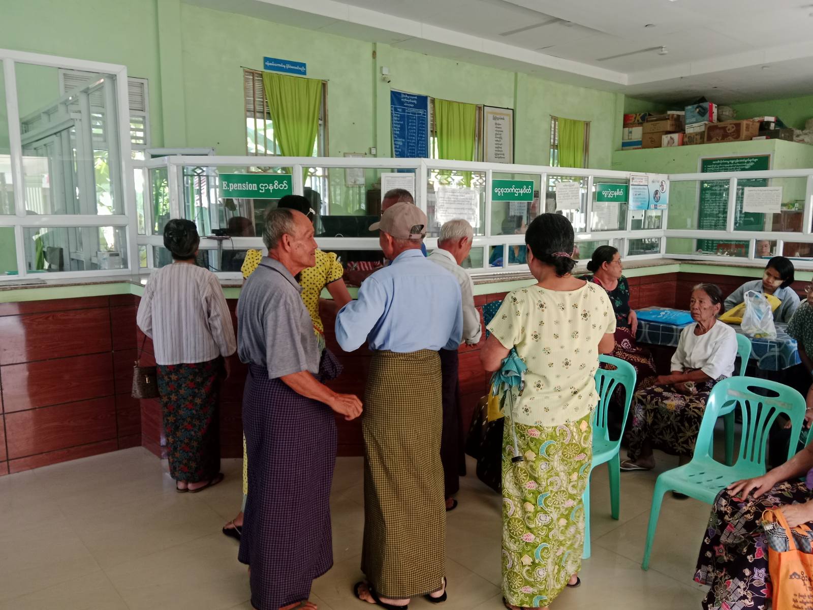 တနင်္သာရီတိုင်းဒေသကြီး၊ ထားဝယ်ခရိုင်၊ သရက်ချောင်းမြို့နယ်၊ မြန်မာ့စီးပွားရေးဘဏ်၌ နိုင်ငံ့ဝန်ထမ်းပင်စင်စား(အငြိမ်းစား)များအား ပင်စင်လစာငွေများကို ယနေ့နံနက် ၈ နာရီခွဲမှ စတင်၍ မြို့နယ်မြန်မာ့စီးပွားရေးဘဏ်ဝန်ထမ်းများက စနစ်တကျ ထုတ်ပေးလျက်ရှိသည်။