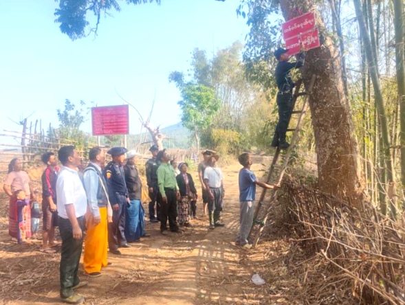 ရှမ်းပြည်နယ်(မြောက်ပိုင်း)၊ မိုင်းရယ်မြို့နယ် စီမံခန့်ခွဲရေးနှင့်အုပ်ချုပ်ရေးကော်မတီဥက္ကဋ္ဌ ဦးစိုးမင်းအောင်နှင့် အဖွဲ့ဝင်များ၊ သဘာဝရေထွက်တော ရေထိန်းတောထိန်းသိမ်းကာကွယ်ရေး ဆပ်မကော်မတီဝင်များဖြစ်သည့် မြို့နယ် ထွေ/အုပ်၊ သစ်တောဦးစီးဌာန၊ မီးသတ်ဦးစီးဌာန၊ မြေစာရင်းနှင့်ကြေးတိုင်ဦးစီးဌာနနှင့် စိုက်ပျိုးရေးဦးစီးဌာနတို့ပါဝင်သည့် အဖွဲ့သည် ယမန်နေ့နံနက် ၉ နာရီက နားဖျိုင်းကျေးရွာ၌ သဘာဝရေထွက်တော ရေထိန်းတော ထိန်းသိမ်းကာကွယ်ခြင်းအား ပြည်သူများကျယ်ကျယ်ပြန့်ပြန့်သိရှိနိုင်စေရန် ဥပဒေတားမြစ်ချက် ဆိုင်းဘုတ်စိုက်ထူခြင်းကို ပြုလုပ်သည်။