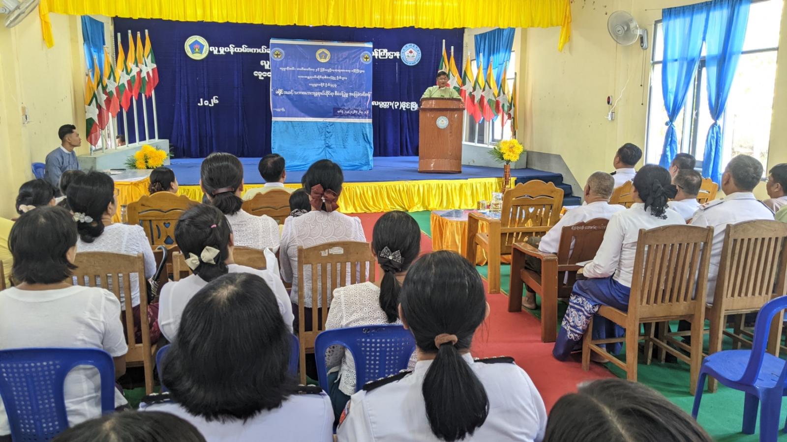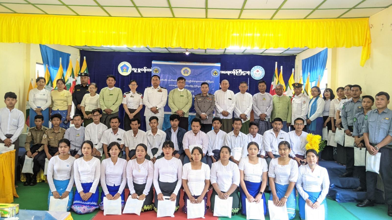 ထို့နောက် ခရိုင်ဘေးအန္တရာယ်ဆိုင်ရာစီမံခန့်ခွဲမှုဦးစီးဌာန၊ ခရိုင်ဦးစီးမှူး ဒေါ်နော်ရူဘီစိုးက သင်တန်းဖွင့်လှစ်ရခြင်းနှင့်စပ်လျဥ်း၍ ရှင်းလင်းတင်ပြပြီး သင်တန်းဆက်လက်ဖွင့်လှစ်ခဲ့ကြောင်းနှင့် ခရိုင် မြို့နယ်အဆင့်ဖွဲ့စည်းထားရှိသည့် သဘာဝဘေးအန္တရာယ်ဆိုင်ရာစီမံခန့်ခွဲမှုအဖွဲ့ အသီးသီးတွင် ပါဝင်တာဝန်ယူဆောင်ရွက်ကြသည့် ဌာနဆိုင်ရာများမှ သင်တန်းသား/သူ (၃၀)ဦး တက်ရောက်ခဲ့ကြောင်း သိရသည်။