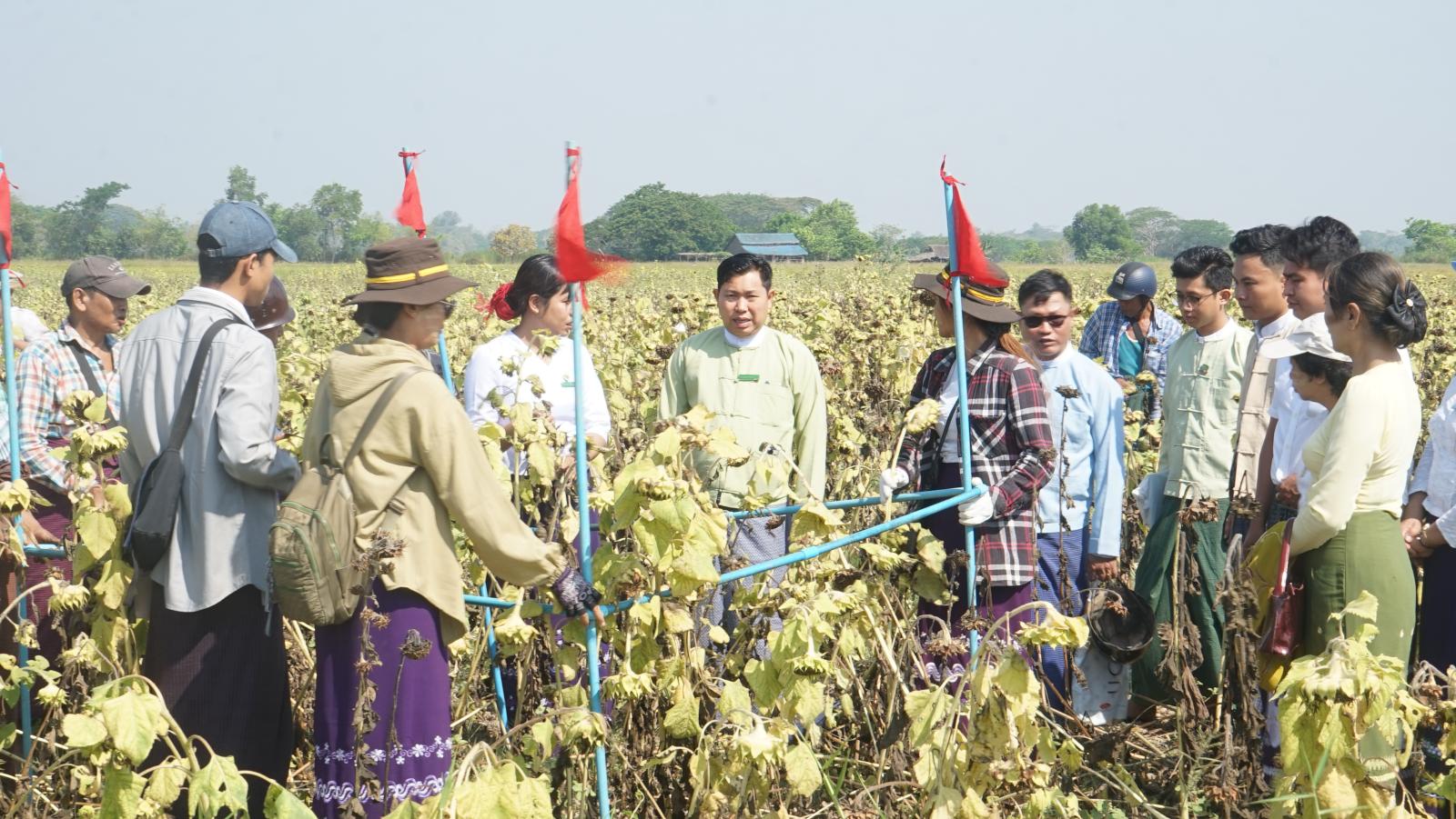 အဆိုပါ ဆီထွက်သီးနှံဆောင်းနေကြာစံကွက်ရိတ်သိမ်းနေမှုကို မြို့နယ်စိုက်ပျိုးထုတ်လုပ်မှု တိုးတက်မြင့်မားရေး ကြီးကြပ်မှုကော်မတီဥက္ကဋ္ဌ ဦးခင်မောင်ဦးနှင့်အဖွဲ့ဝင်များက ဆောင်းနေကြာစံကွက်ရိတ်သိမ်းနေမှုအား ကြည့်ရှုအားပေးကြပြီး တောင်သူများအနေဖြင့် ထွက်နှုန်းပြည့်မီစေရေး အလေးထားဆောင်ရွက်ကြရန်နှင့် ဒေသအတွင်းဆီဖူလုံရေးအတွက် တစ်ပိုင်တစ်နိုင်ကစ၍ စီးပွားဖြစ်စိုက်ပျိုးနိုင်ရေးကို ကြိုးစားပြီးစိုက်ပျိုးသွားကြရန် မှာကြား ခဲ့သည်။