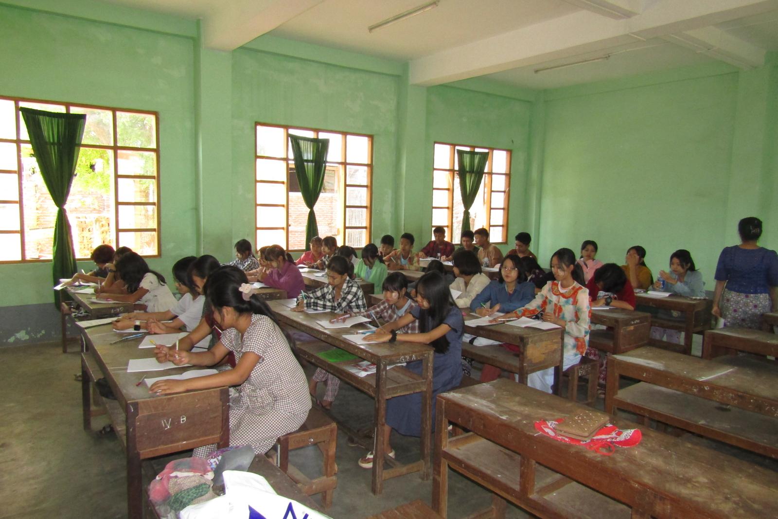 နွေရာသီ English Grammer သင်တန်းကို ဆရာ၊ ဆရာမ (၄) ဦးမှ ပညာဒါနအဖြစ် အခမဲ့ သင်ကြားပေးသွားမည်ဖြစ်ပြီး ကျောင်းသား၊ ကျောင်းသူ(၅၄)ဦး တက်ရောက်လျက်ရှိကြောင်း သိရသည်။
