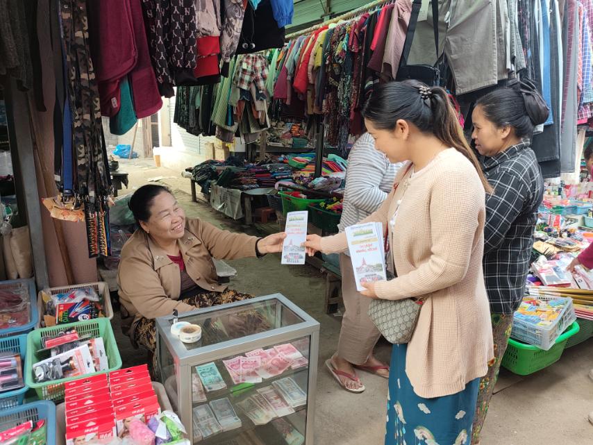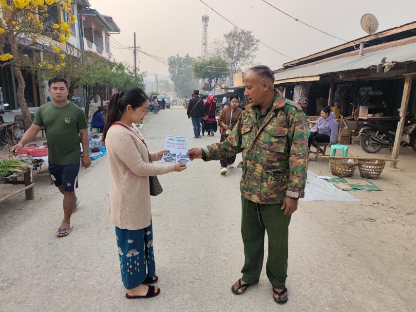 ရှမ်းပြည်နယ်(အရှေ့ပိုင်း)၊ ကျိုင်းတုံခရိုင်၊ မိုင်းခတ်မြို့နယ်၌ မတ်လ ၂၇ ရက်နေ့တွင် ကျရောက်မည့် (၈၁)နှစ်ပြည့် တပ်မတော်နေ့အထိမ်းအမှတ် သတင်းစကား လက်ကမ်းစာစောင်များကို ပြန်ကြားရေးနှင့်ပြည်သူ့ဆက်ဆံရေးဦးစီးဌာန ဝန်ထမ်းများက မြို့ပေါ်ရပ်ကွက်နေပြည်သူများ၊ မြို့မဈေးနှင့်လူစည်ကားရာနေရာများသို့ ယနေ့နံနက် ၈ နာရီအချိန်က ဖြန့်ဝေခဲ့သည်။