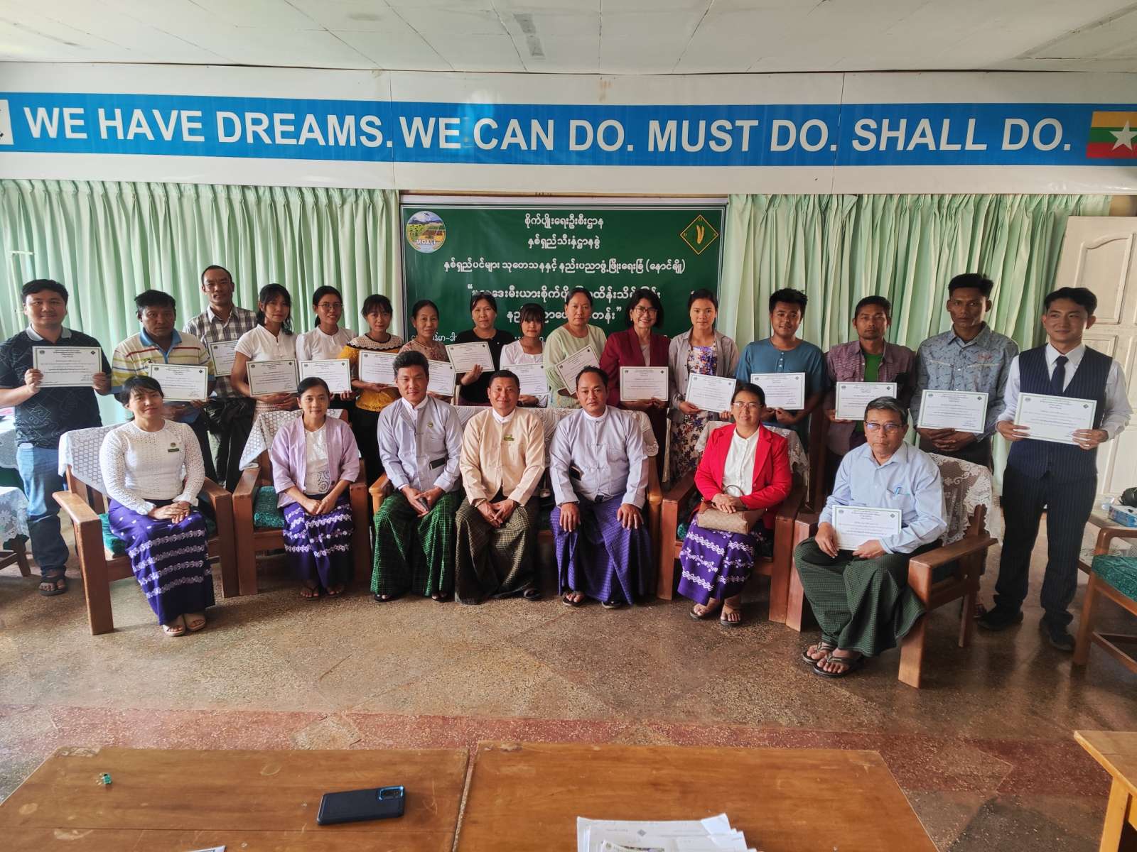 နိုင်ငံခြားဝင်ငွေရရှိနိုင်သော မက္ကဒေးမီးယားသီးနှံပင်အား အသီးအရည်အသွေးနှင့်အထွက်နှုန်းကောင်းသော ကိုင်းဆက်မျိုးကောင်းပင်များ ပြောင်းလဲစိုက်ပျိုးလာစေရန်နှင့် စိုက်ခင်းစတင် တည်ထောင်ချိန်မှစ၍ စိုက်ခင်းတွင် ပြုစုထိန်းသိမ်းခြင်း နည်းပညာများကို တောင်သူများ ကိုယ်တိုင် ပျိုးထောင်လုပ်ကိုင် ဆောင်ရွက်လာနိုင်ကြစေရန်နှင့် မက္ကဒေးမီးယားအသီးအားတန်ဖိုးမြင့် ကုန်ချော ထုတ်လုပ်ရောင်းချနိုင်ခြင်းကို ဆောင်ရွက်နိုင်ကြစေရန်ရည်ရွယ်၍ ပြင်ဦးလွင်ခရိုင် စိုက်ပျိုးရေးဦးစီးဌာနနှင့် နှစ်ရှည်ပင်များ သုတေသနနှင့်နည်းပညာဖွံ့ဖြိုးရေးခြံ(နောင်ချို)တို့ ပူးပေါင်းဖွင့်လှစ်သော မက္ကဒေးမီးယား စိုက်ပျိုးပြုစုထိန်းသိမ်းခြင်း နည်းပညာပေးသင်တန်းဆင်းပွဲ အခမ်းအနားကို ယမန်နေ့ မွန်းလွဲ ၃ နာရီအချိန်က ပြင်ဦးလွင်မြို့နယ်၊ မြန်မာ-ခါနန် တောင်သူ လယ်သမားနည်းပညာဖွံ့ဖြိုးမှု လေ့ကျင့်ရေးသင်တန်းကျောင်း၊ ဒိုးကွင်တွင် ကျင်းပပြုလုပ်ခဲ့သည်။
