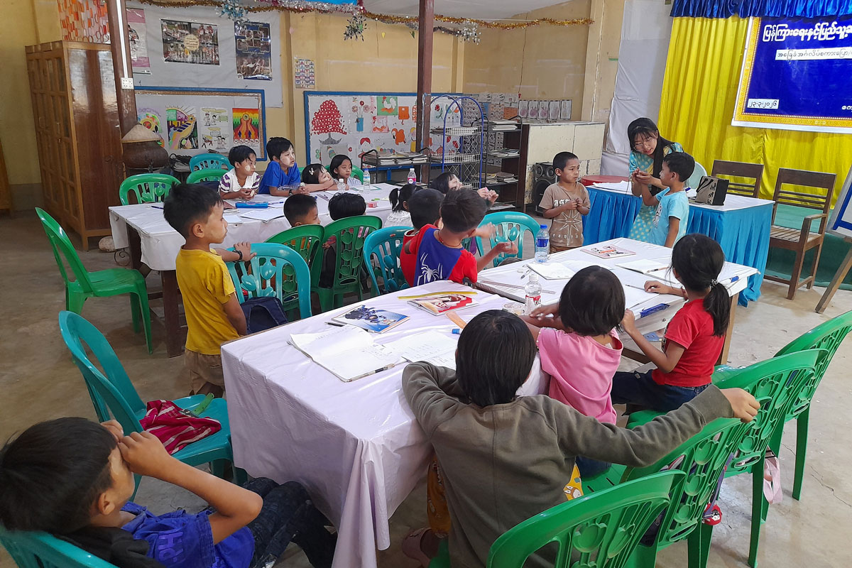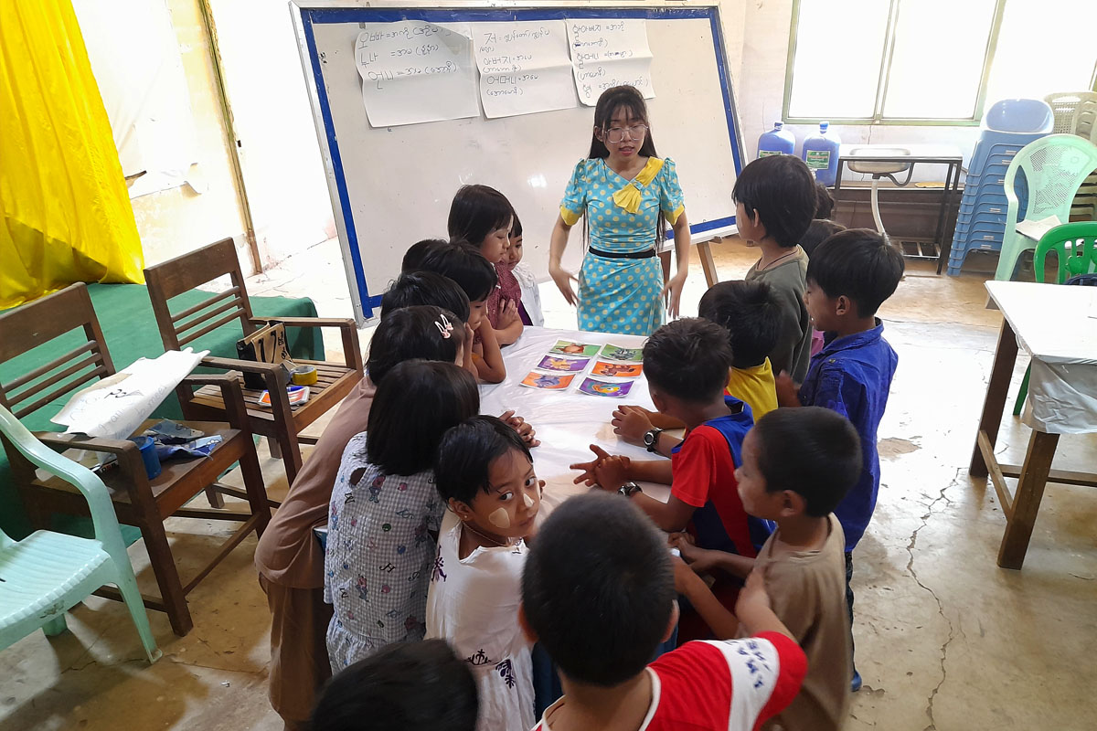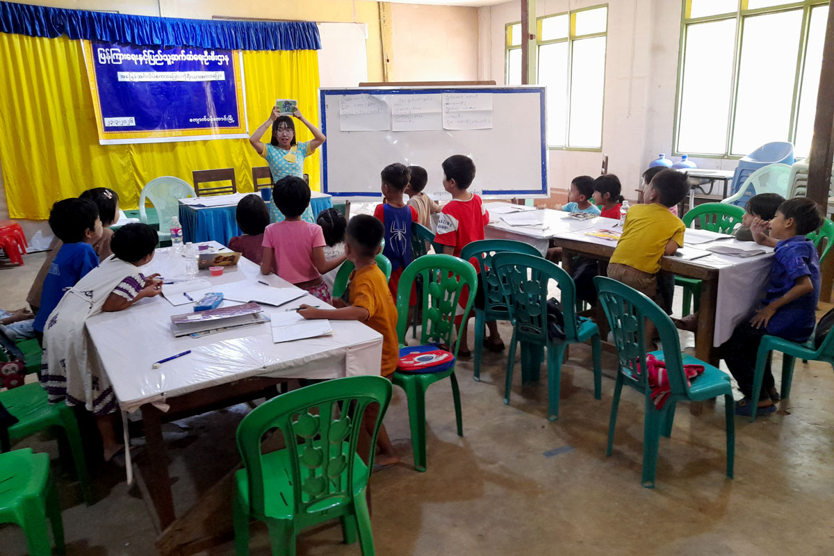 အဆိုပါ သင်တန်းတွင် အခြေခံအင်္ဂလိပ်စကားပြောသင်တန်းကို ဆရာမ ဒေါ်ချိုသာနှင့် အခြေခံကိုရီးယားစကားပြောသင်တန်းကို ဆရာ ဦးအောင်ပိုင်တို့က သင်ကြားပေးခြင်းဖြစ်ပြီး၊ နံနက် ၉ နာရီမှ ၁၀ နာရီခွဲ အထိ အင်္ဂလိပ်စကားပြော သင်တန်းဖွင့်လှစ်ပေးပြီး၊ နံနက် ၁၀ နာရီ ၄၅ မိနစ်မှ ၁၂ နာရီအထိ ကိုရီးယား စကားပြော အခြေခံသင်ရိုးများကို မူလတန်းဆင့်ကလေးငယ် ၂၀ ဦးတို့အား သင်ကြား ပေးခြင်းဖြစ်သည်။ ထိုသို့ သင်ကြားပေးရာတွင် အခြေခံအင်္ဂလိပ်စကားပြော သင်ကြားမှုကို ဆရာမ ဒေါ်ချိုသာက အင်္ဂလိပ်စာ အမည်တပ် တရိစ္ဆာန် အရုပ်ကပ်များကို အစုအဖွဲ့လိုက် ရွေးချယ်စေခြင်းနှင့် မိမိ မိသားစုဝင်များ၏ အမည်များကို အင်္ဂလိပ်လို တစ်ဦးချင်း မိတ်ဆက်ပြောကြားစေခြင်း၊ အင်္ဂလိပ်ကဗျာနှင့် သီချင်းများ အစုအဖွဲ့လိုက် ရွတ်ဖတ်စေခြင်းများဖြင့် သင်ကြားပေးလျက်ရှိရာ သင်တန်းတက်ရောက်နေသည့် ကလေးများ စိတ်ပါဝင်စား ပျော်ရွှင်စွာဖြင့် သင်တန်းတက်ရောက်လျက်ရှိကြကြောင်းနှင့် အဆိုပါ သင်တန်းများကို မတ်လ ၃၁ ရက်နေ့ထိ ဖွင့်လှစ်ပေး သွားမည်ဖြစ်ကြောင်း သိရသည်။