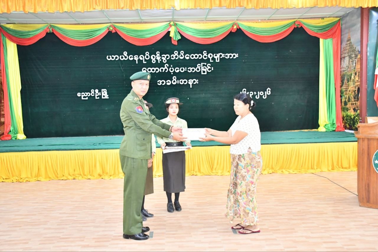 မန္တလေးတိုင်းဒေသကြီး၊ ညောင်ဦးခရိုင်၊ ညောင်ဦးမြို့နယ်၌ ယာယီနေရပ်စွန့်ခွာပြည်သူများအား ထောက်ပံ့ငွေပေးအပ်ပွဲအခမ်းအနားကို အထွေထွေအုပ်ချုပ်ရေးဦးစီးဌာန၊ အနော်ရထာခန်းမ၌ မတ် ၂၆ ရက်၊ နံနက် ၁၀ နာရီခွဲက ကျင်းပခဲ့ကြောင်း သိရသည်။