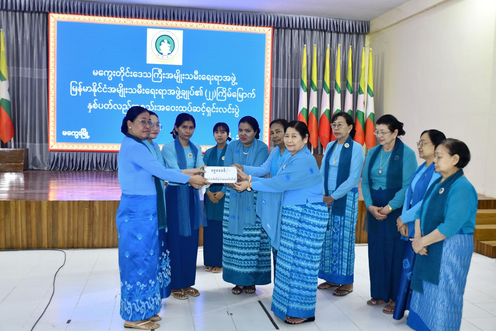 မကွေးတိုင်းဒေသကြီး အမျိုးသမီးရေးရာအဖွဲ့မှ မြန်မာနိုင်ငံအမျိုးသမီးရေးရာအဖွဲ့ချုပ်၏ (၂၂)ကြိမ်မြောက် နှစ်ပတ်လည်အစည်းအဝေး ထပ်ဆင့်ရှင်းလင်းပွဲကို ယမန်နေ့နံနက် (၉)နာရီက မကွေးမြို့နယ် စုပေါင်းရုံးအစည်းအဝေးခန်းမ၌ ကျင်းပရာ အခမ်းအနားသို့ မကွေးတိုင်းဒေသကြီး အမျိုးသမီးရေးရာအဖွဲ့နာယက၊ တိုင်းဒေသကြီးဝန်ကြီးချုပ်၏ဇနီး ဒေါ်ဝင်းဝင်းမြင့်၊ တိုင်းဒေသကြီးအစိုးရအဖွဲ့ဝင် ဝန်ကြီးများ၏ဇနီးများ၊ မကွေးတိုင်းဒေသကြီး အမျိုးသမီးရေးရာအဖွဲ့ဥက္ကဋ္ဌနှင့် အမှုဆောင်အဖွဲ့ဝင်များ၊ ခရိုင်နှင့်မြို့နယ်များမှ အမျိုးသမီးရေးရာအဖွဲ့ဥက္ကဋ္ဌနှင့် အဖွဲ့ဝင်များ တက်ရောက်သည်။