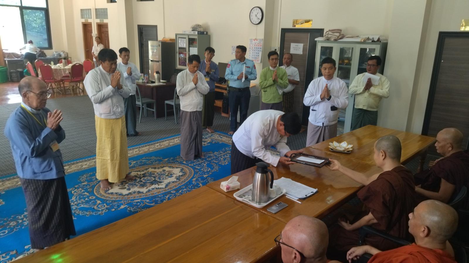 ထို့နောက် ရန်ကုန်တိုင်းဒေသကြီး အစိုးရအဖွဲ့၀န်ကြီးချုပ် ဦးစိုးသိန်းနှင့် အစိုးရအဖွဲ့၀င်၀န်ကြီးများက အစိုးရဓမ္မာစရိယစာမေးပွဲတွင် ကြီးကြပ်ဆောင်ရွက်လျက်ရှိသည့် ထေကြီးဝါကြီးဆရာတော် အရှင်သူမြတ်များအား ဖူးမြှော်ကြည်ညိုကာ ဩဝါဒခံယူပြီး မြောက်ဥက္ကလာပမြို့နယ်အတွင်း အစိုးရဓမ္မာစရိယစာမေးပွဲဖြေရာတွင် အဆင်ပြေနိုင်စေရေး န၀ကမ္မအလှူငွေများ ဆက်ကပ်လှူဒါန်းခဲ့ကြသည်။