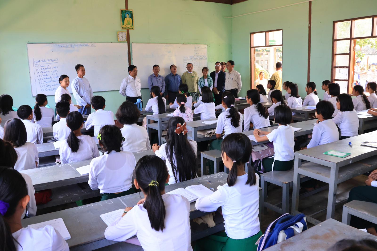 ဆက်လက်၍ ပြည်နယ်ဝန်ကြီးချုပ်နှင့် အစိုးရအဖွဲ့ဝင်များသည် အမှတ် (၅) အခြေခံပညာ အထက်တန်းကျောင်းသို့ ရောက်ရှိပြီး နွေရာသီ အင်္ဂလိပ်စာနှင့် ပန်းချီသင်တန်း ဖွင့်လှစ်သင်ကြားနေမှုကို ကြည့်ရှုအားပေးသည်။ ပြည်နယ်ဝန်ကြီးချုပ်က ကျောင်းသား ကျောင်းသူများအနေနှင့် မိမိတို့ဝါသနာပါရာ သင်တန်းများကို အားလပ်ရက်များတွင် တက်ရောက် သင်ယူခြင်းဖြင့် မိမိတို့၏ဘဝတိုးတက်မြင့်မားရေးကို အထောက်အပံ့ပြုနိုင်မည်ဖြစ်ကြောင်းနှင့် မိမိတို့ နိုင်ငံတော်နှင့် ပြည်နယ်က အားကိုးအားထားပြုရသည့် လူငယ်များဖြစ်လာအောင် ကြိုးပမ်းကြစေလိုကြောင်း ပြောကြားခဲ့သည်။ ထို့နောက် ပြည်နယ်ဝန်ကြီးချုပ်က သင်တန်းနည်းပြများနှင့် သင်တန်းသား၊ သင်တန်းသူများကို ချီးမြှင့်ငွေများ ပေးအပ်ရာ သင်တန်းသားသင်တန်းသူ ကိုယ်စားလှယ် ၂ ဦးက လက်ခံရယူကြသည်။