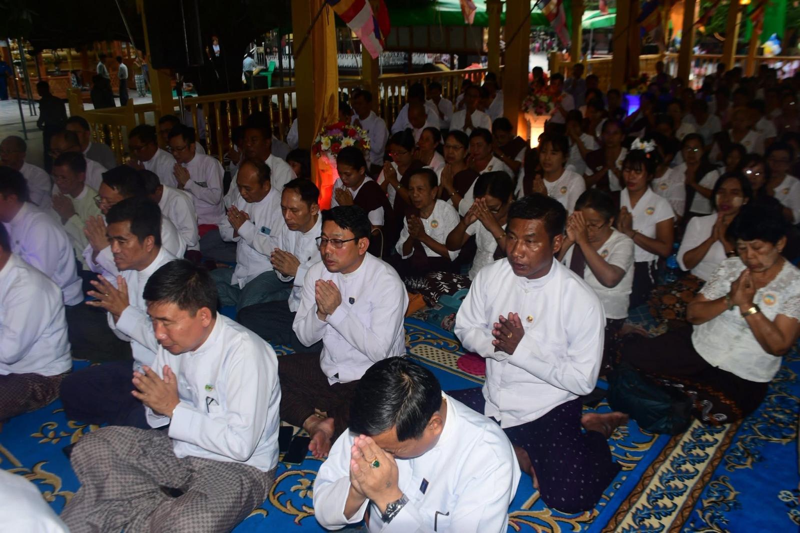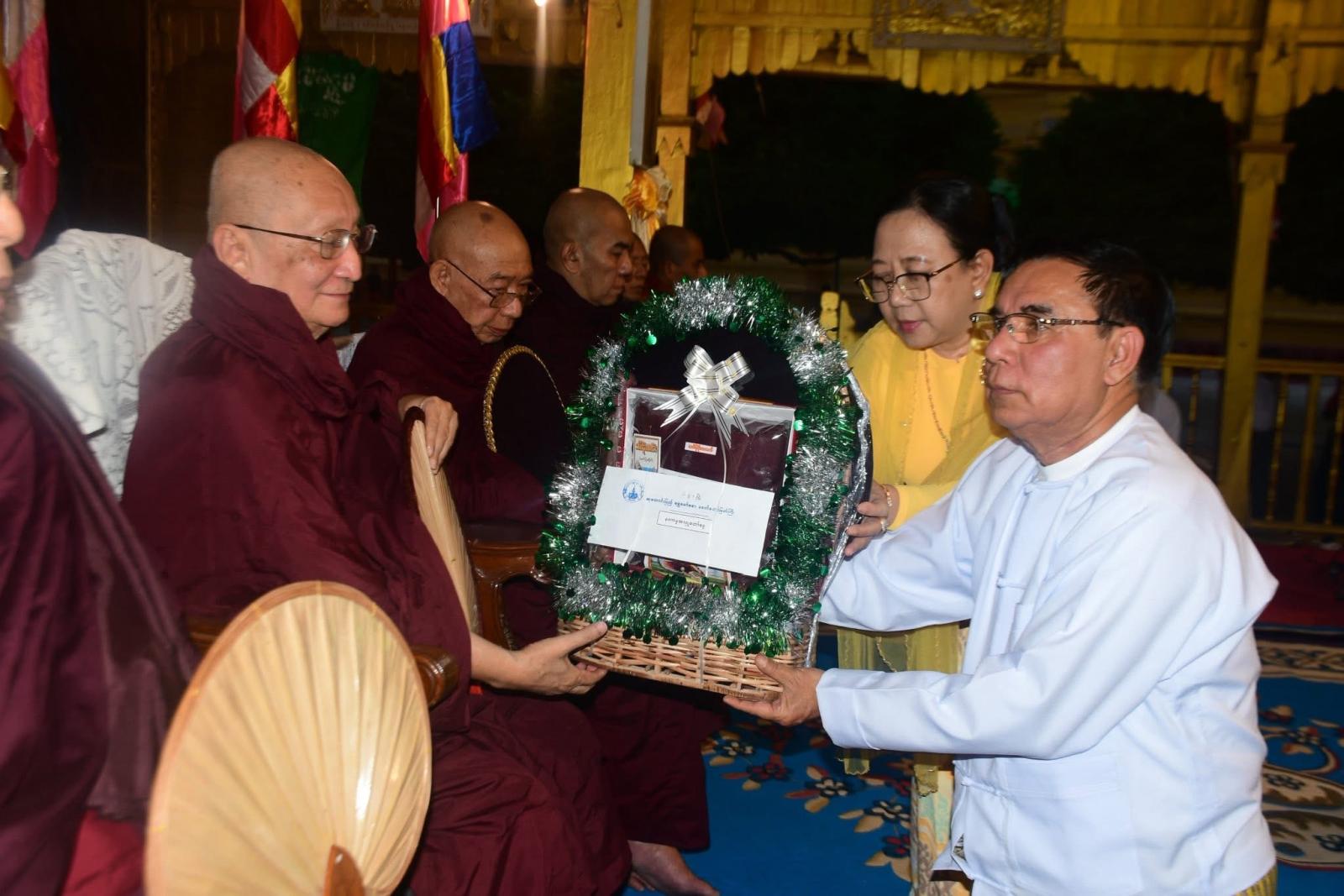 ထို့နောက် စိတ္တသုခသဟပုညကာရီဝတ်အသင်းမှ ဦးမြင့်ရွှေက သမ္မာဒေဝနတ်များအား ပင့်ဖိတ်ပြီး ဆရာတော်၊ သံဃာတော်အရှင်သူမြတ်များက ပရိတ်တရားတော်များကို ရွတ်ပွားသရဇ္ဈာယ် ချီးမြင့်တော်မူကြသည်။