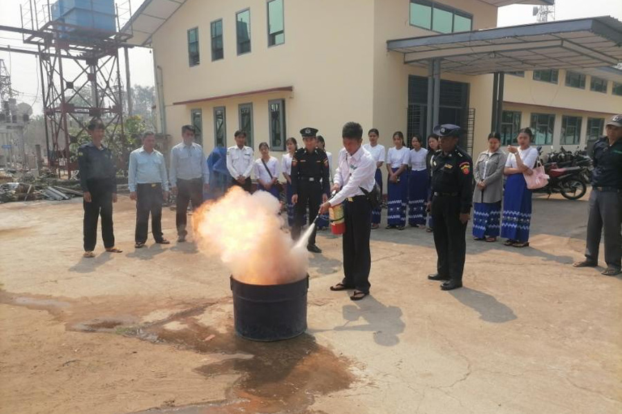 ရှေးဦးစွာ မီးသတ်ဦးစီးဌာန မြို့နယ်ဦးစီးမှူး ဦးအောင်ကြည်ထွန်းက မီးဘေးအန္တရာယ် ကြိုတင်ကာကွယ်ရေးနှင့်မီးဘေးအန္တရာယ်ကင်းရှင်းရေးတို့အတွက် လိုက်နာဆောင်ရွက်ရမည့်အချက်များ၊ ရှောင်ကျဉ်ရမည့်အချက်များ၊ မီးဘေးအန္တရာယ် ပေါ်ပေါက်လာပါက အရေးပေါ် ဆောင်ရွက်ရမည့်အကြောင်းအရာများစသည်တို့ကို မြို့နယ်လျှပ်စစ်ဓာတ်အားဖြန့်ဖြူးရေးလုပ်ငန်းရုံးမှ ဝန်ထမ်းများနှင့်မိသားစုဝင်များအား အသိပညာပေး ဟောပြောခဲ့သည်။