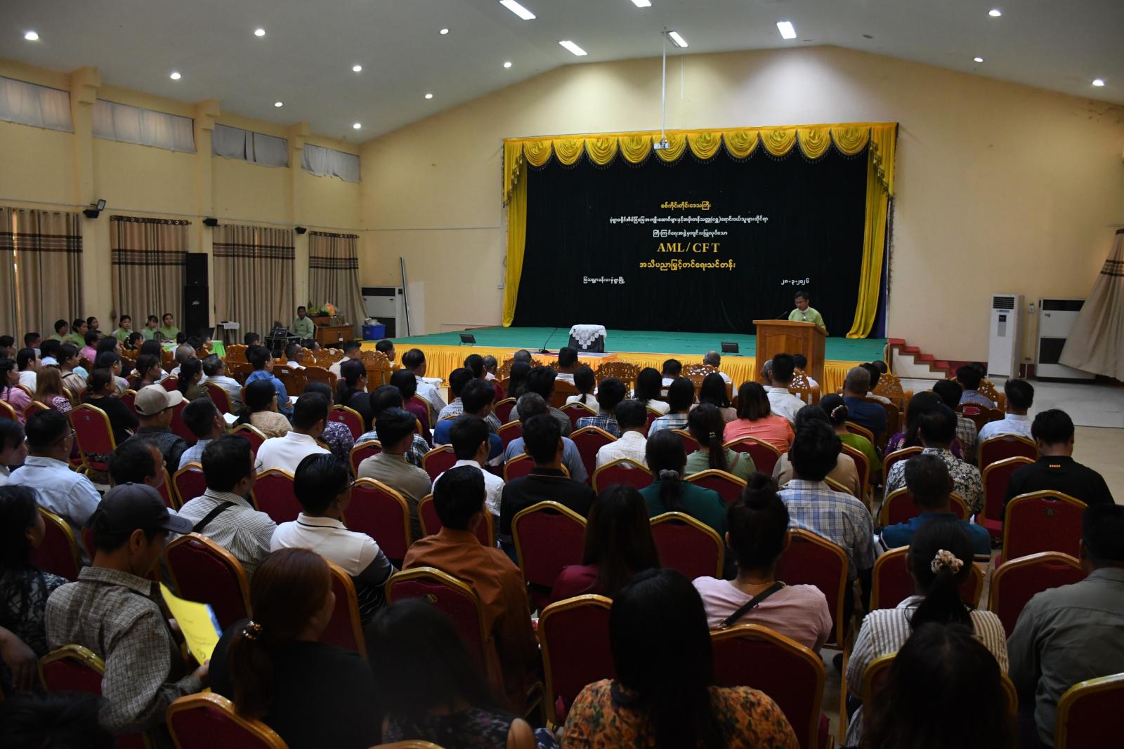 မုံရွာခရိုင်အိမ်ခြံမြေအကျိုးဆောင်များနှင့် အဖိုးတန်သတ္တု(ရွှေ)ရောင်းဝယ်သူများဆိုင်ရာ ကြီးကြပ်ရေးအဖွဲ့မှ ကြီးမှူးကျင်းပသည့် AML/CFT အသိပညာပေးမြှင့်တင်ရေးသင်တန်းဖွင့်ပွဲ အခမ်းအနားကို ယနေ့နံနက် ၉ နာရီက မုံရွာခရိုင် အထွေထွေအုပ်ချုပ်ရေးဦးစီးဌာန မြသလ္လာခန်းမ၌ ကျင်းပပြုလုပ်ခဲ့သည်။