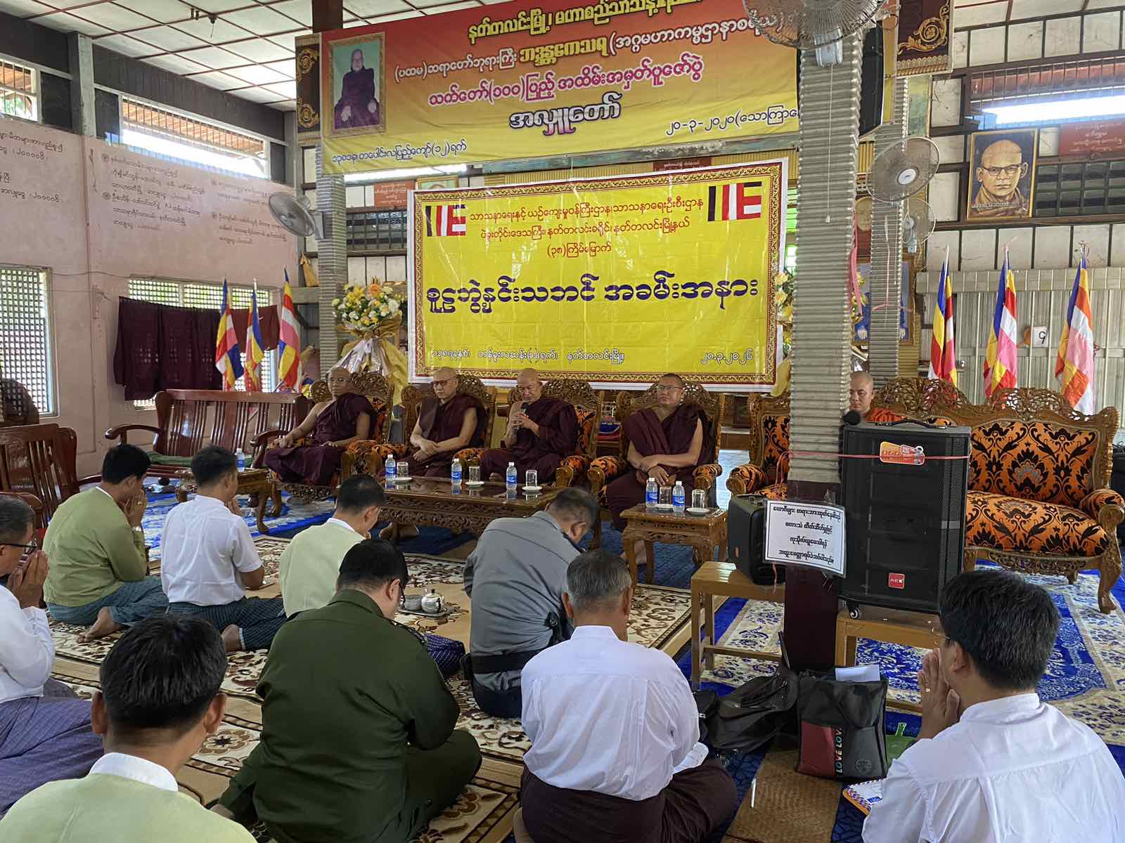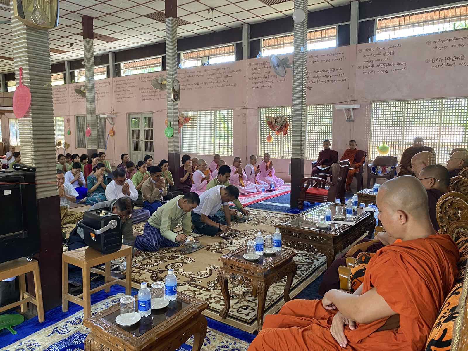 အဆိုပါ အခမ်းအနားကို မြို့နယ်သံဃာ့နာယကဥက္ကဋ္ဌဆရာတော်နှင့် အဖွဲ့ဝင်ဆရာတော်များ၊ စာအောင်သံဃာနှင့် သီလရှင်များ၊ နတ်တလင်းခရိုင်စီမံခန့်ခွဲရေးနှင့်အုပ်ချုပ်ရေးကော်မတီဥက္ကဋ္ဌ ဦးတင်ရွှေ၊ နတ်တလင်းမြို့နယ်စီမံခန့်ခွဲရေးနှင့်အုပ်ချုပ်ရေးကော်မတီဥက္ကဋ္ဌ ဦးကျော်ကျော်ဦးနှင့်အဖွဲ့ဝင်များ၊ မြို့နယ်အဆင့်ဌာနဆိုင်ရာများ၊ မြို့ပေါ်ရပ်ကွက်အုပ်ချုပ်ရေးမှူးများ၊ ရပ်ကွက်နေပြည်သူများတက်ရောက်ခဲ့ပြီး ဆရာတော်သံဃာတော်များနှင့် တက်ရောက်လာသောပရိတ်သတ်များမှ နမောတဿ သုံးကြိမ် ရွတ်ဆိုကာ အခမ်းအနားကိုဖွင့်လှစ်ခဲ့ပြီး မြို့နယ်သံဃာ့နာယကဥက္ကဌ ဆရာတော်ထံမှ ငါးပါးသီလခံယူဆောက်တည်ကာ ပင့်သံဃာတော်များအား လှူဖွယ်ဝတ္ထုပစ္စည်းများ ဆက်ကပ်လှူဒါန်းခဲ့သည်။