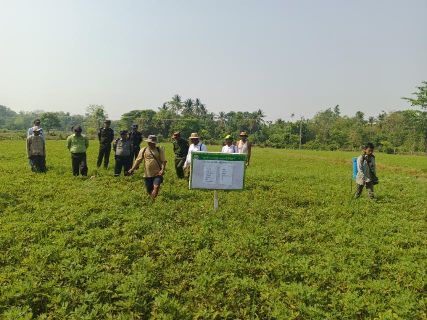 ထိုသို့ သရုပ်ပြရာတွင် မြို့နယ်စိုက်ပျိုးရေးဦးစီးဌာနမှ ဦးစီးအရာရှိ ဦးသက်လွင်က ဌာနဝန်ထမ်းများ စိုက်ကွက်တာဝန်ခံများနှင့်အတူ တုံးကြီးကျေးရွာအုပ်စု၊ သံဘိုကျေးရွာရှိ တောင်သူဦးနိုင်ဦး စိုက်ပျိုးထားသည့် ဆောင်းမြေပဲစိုက်ခင်း (၃)ဧက တွင် နွားကျင်ငယ်ရည် အသုံးပြုရွက်ဖျန်းသဘာဝမြေသြဇာဖျော်စပ်ရန် နည်းလမ်းများအားရှင်းလင်းပြောကြားခဲ့ပြီး လက်တွေ့လုပ်ဆောင်၍ ပက်ဖျန်းသရုပ်ပြဆောင်ရွက်ခဲ့ကြောင်းသိရသည်။