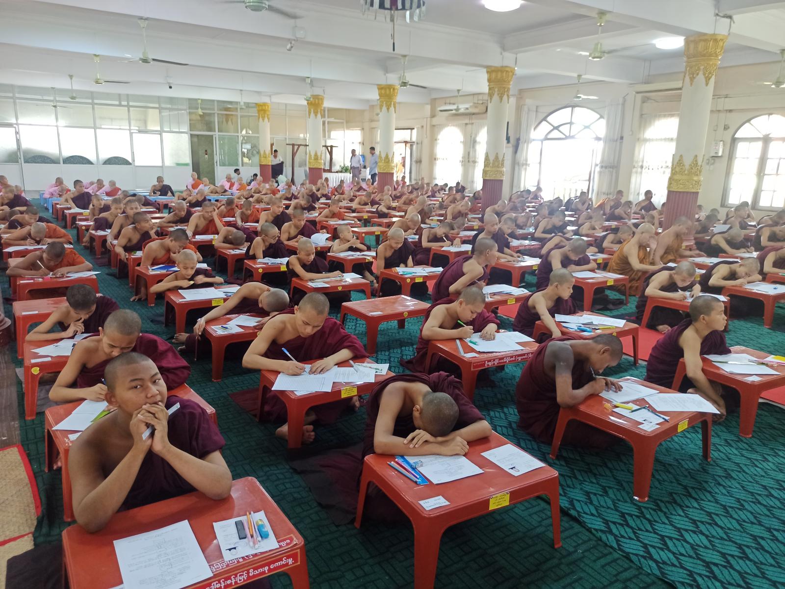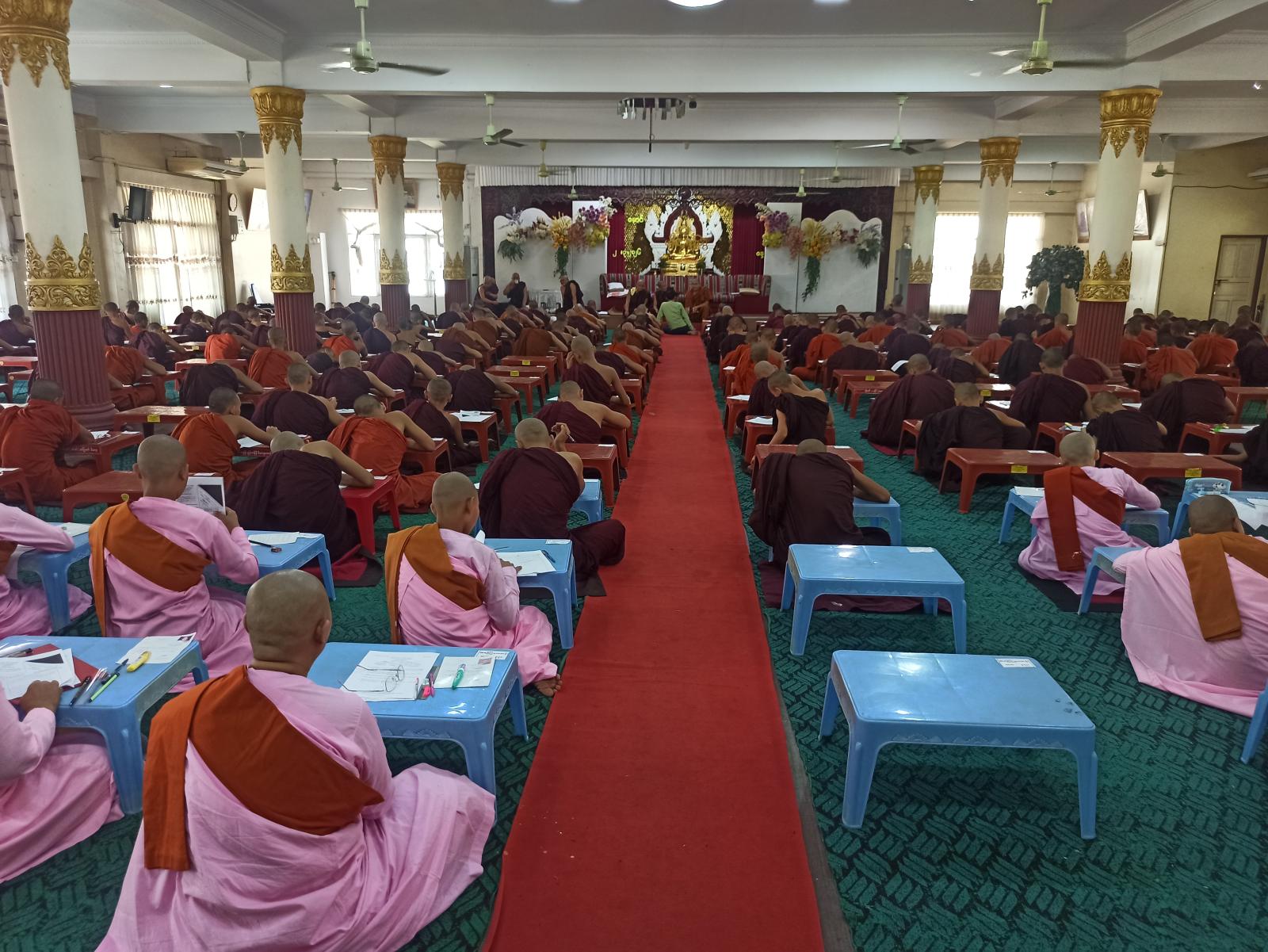 ရန်ကုန်တိုင်းဒေသကြီး၊ သင်္ဃန်းကျွန်းမြို့နယ်တွင် ၂၀၂၆ ခုနှစ်နိုင်ငံတော်အစိုးရဓမ္မာစရိယနှင့် ပါဠိပထမပြန်စာမေးပွဲများကို ဆုတောင်းပြည့်ကျိုက္ကစံစေတီဓမ္မဗိမာန်တော်ကြီး၊ မင်္ဂလာဗဟိုမဏ္ဍပ်၊ ပြားတစ်ရာဓမ္မာရုံနှင့် လယ်တီဝိပဿနာကျောင်းတိုက်တို့၌ ယနေ့မွန်းတည့် ၁၂ နာရီက ဘာသာရပ်အလိုက် ဆက်လက်ဖြေဆိုလျက်ရှိရာ သင်္ဃန်းကျွန်းမြို့နယ်စီမံခန့်ခွဲရေးနှင့်အုပ်ချုပ်ရေးကော်မတီဥက္ကဋ္ဌ ဦးလှမျိုး အစိုးရဓမ္မာစရိယစာမေးပွဲဖြေဆိုလျက်ရှိသည့် သံဃာတော်၊ သီလရှင်များအား ဖူးမြော်ကြည်ညိုသည်။