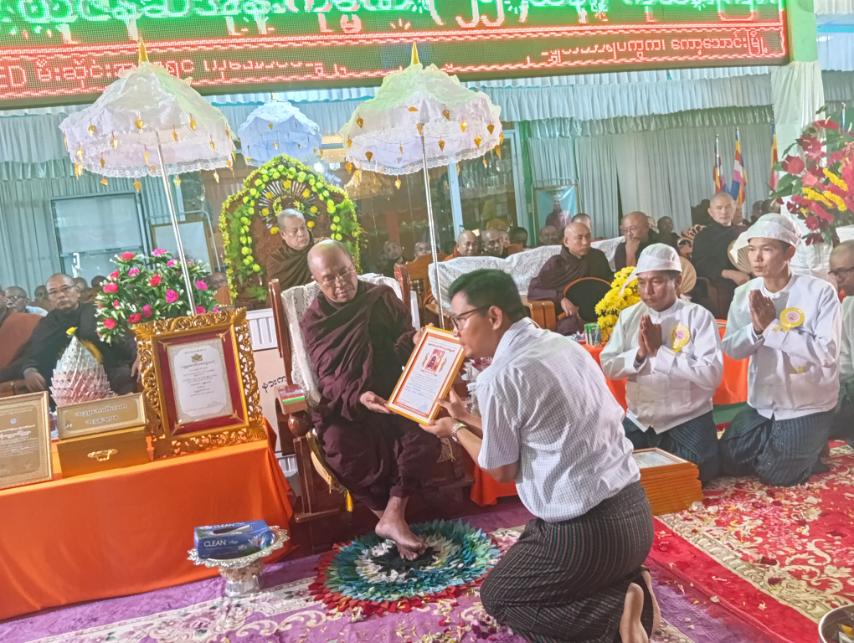 တနင်္သာရီတိုင်းဒေသကြီး၊ ကော့သောင်းခရိုင် ကော့သောင်းမြို့တွင် နိုင်ငံတော်မှချီးမြှင့်သည့် သဒ္ဓမ္မဇောတိကဓဇဘွဲ့တံဆိပ်တော်ရ ရွှေတောင်ကုန်းဆရာတော်အား ဂုဏဝိသိဋ္ဌပူဇော်ပွဲအခမ်းအနားကို မတ် ၂၉ ရက် နံနက်ပိုင်းက ရွှေပြည်သာရပ်ကွက်၊ရွှေတောင်ကုန်းသာသနာ့ရိပ်သာကျောင်း၌ ကျင်းပသည်။