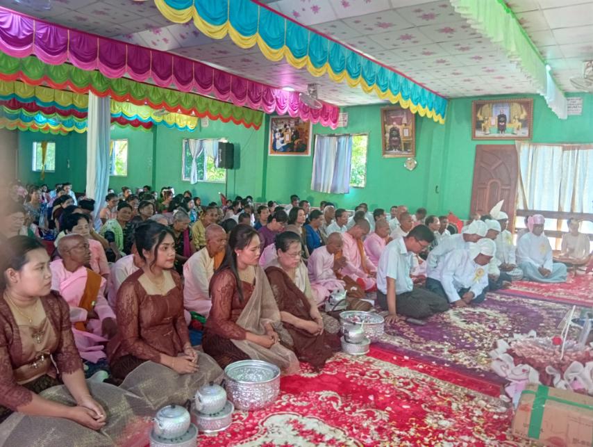 ယင်းနောက် မတည်အလှူရှင်များအား အနုမောဒနာဂုဏ်ပြုမှတ်တမ်းလွှာပေးအပ်ချီးမြှင့်ပြီး လောင်းလုံမြို့နယ်၊တီဇစ်ရွာအထက်ကျောင်း၊ သာသနာဓဇအစိုးရဓမ္မစရိယ၊ ပရိယတ္တိသာသနာပါလဓမ္မာစရိယ ဘဒ္ဒန္တ ကောသလ္လ (ဂန္ထဝါစကပဏ္ဍိတ)ထံမှ အနုမောဒနာတရားနာယူ၍ လှူဒါန်းမှုအစုစုအတွက် ရေစက်သွန်းချအမျှပေးဝေခဲ့ကြပြီး ဗုဒ္ဓသာသနံစိရံတိဋ္ဌတုသုံးကြိမ်ရွတ်ဆို၍ အခမ်းအနားရုပ်သိမ်းခဲ့ကြောင်းသိရသည်။