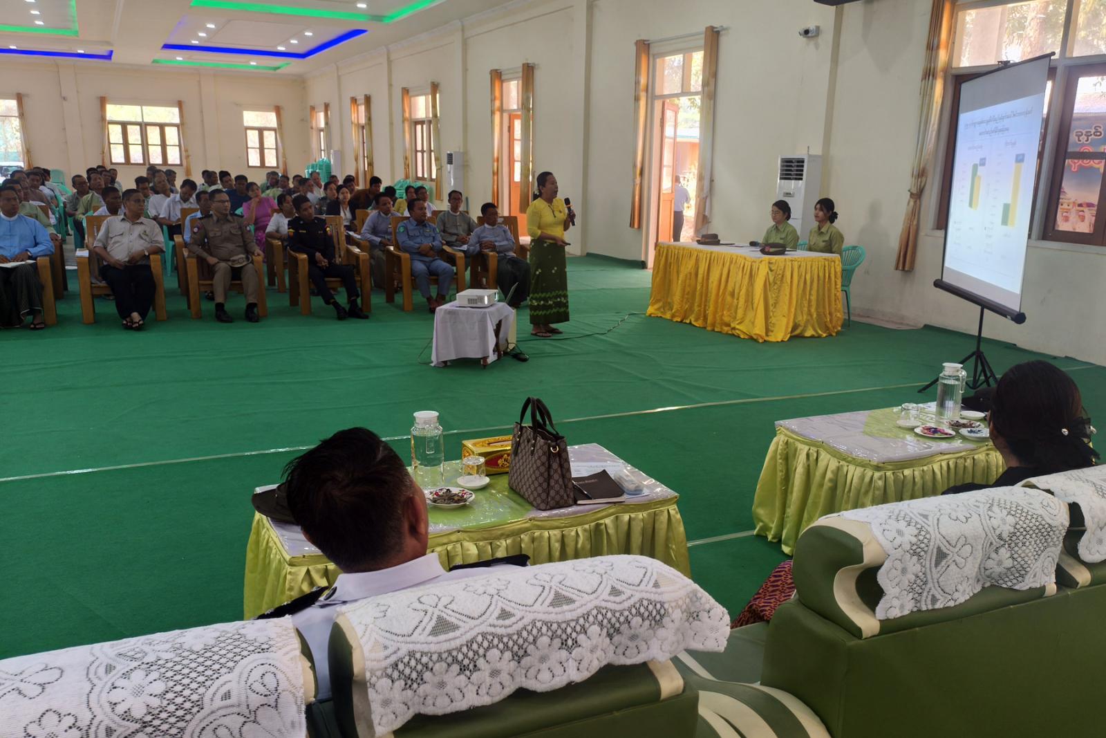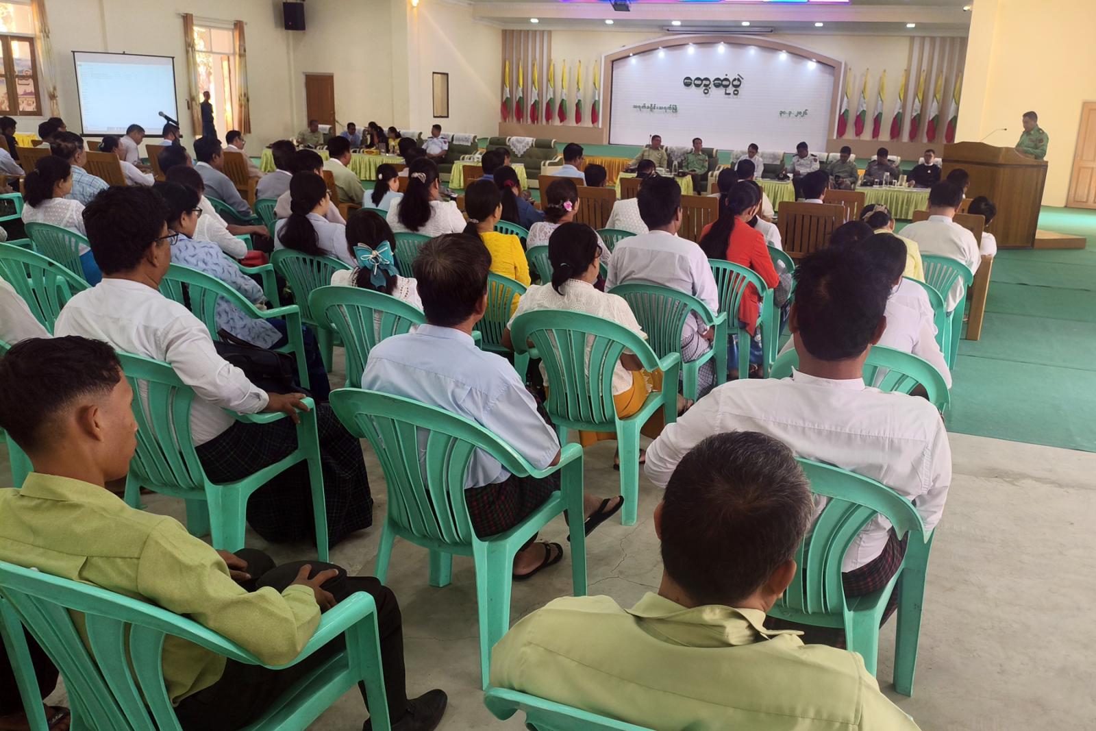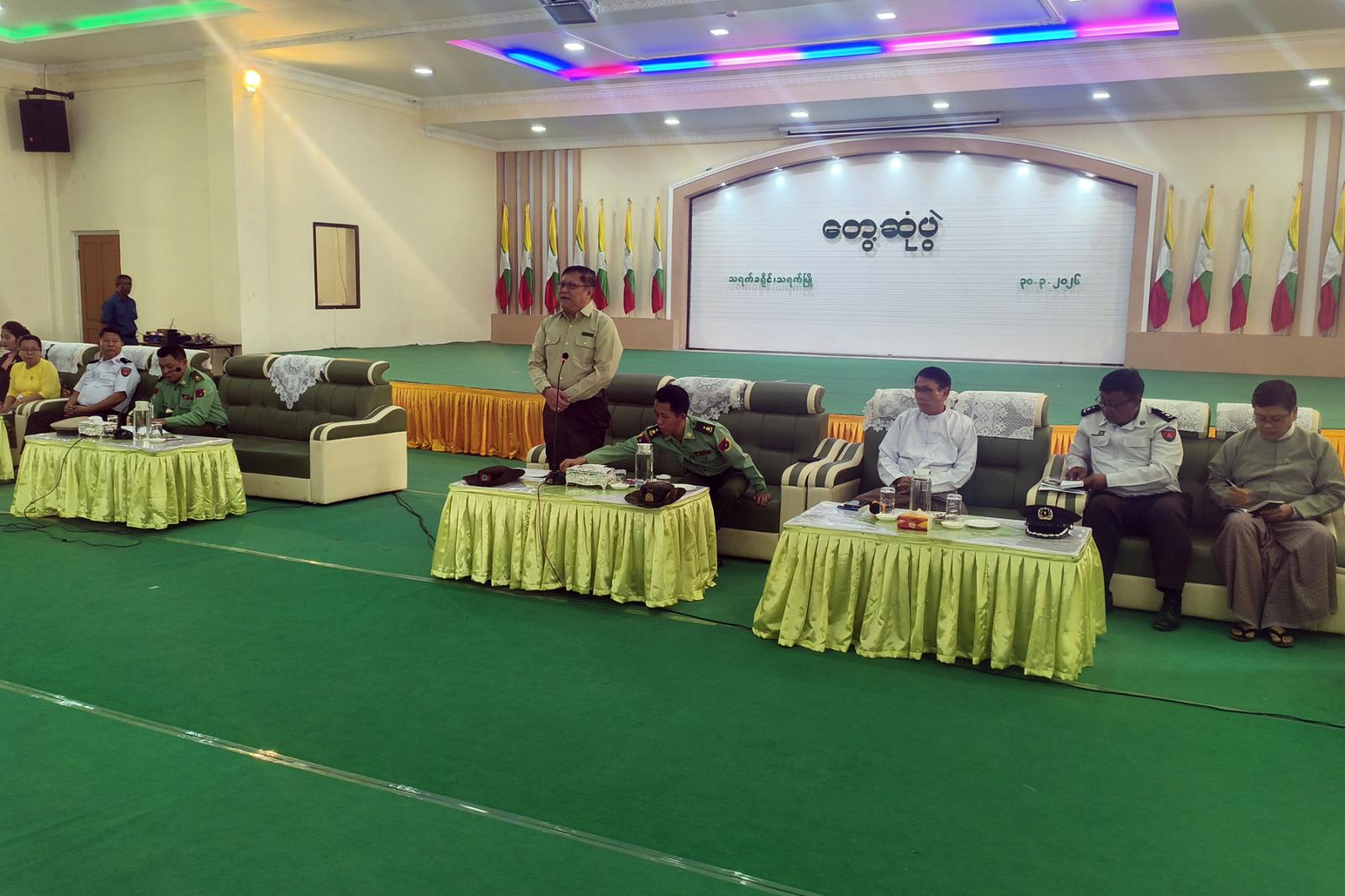 အဆိုပါအခမ်းအနားတွင် ခရိုင်စီမံခန့်ခွဲရေးနှင့်အုပ်ချုပ်ရေးကော်မတီဥက္ကဋ္ဌ ဦးမြတ်ထွန်းဦးက အဖွင့်အမှာစကားပြောကြားပေးခဲ့ပြီး မြို့နယ်စီမံခန့်ခွဲရေးနှင့်အုပ်ချုပ်ရေးကော်မတီခေတ္တဥက္ကဋ္ဌ ဗိုလ်မှူး မျိုးသီဟဇော်က မြို့နယ်၏လုံခြုံရေးကိစ္စရပ်များနှင့် ကုန်စည်စီးဆင်းမှုအခြေအနေကိစ္စရပ်များကို ရှင်းလင်းဆွေးနွေးပေးခဲ့သည်။