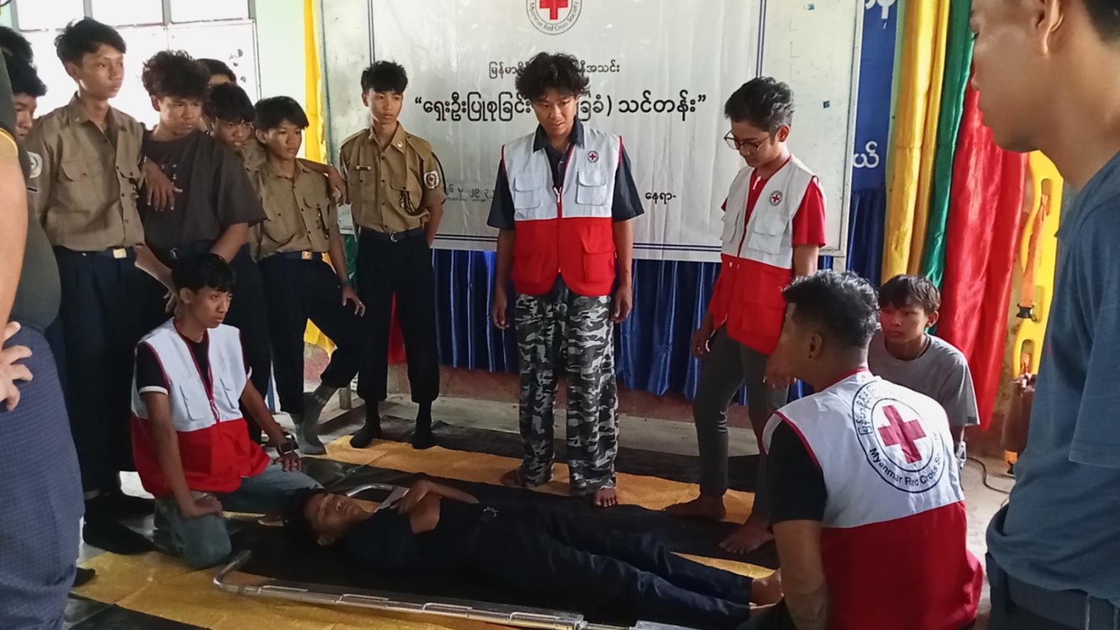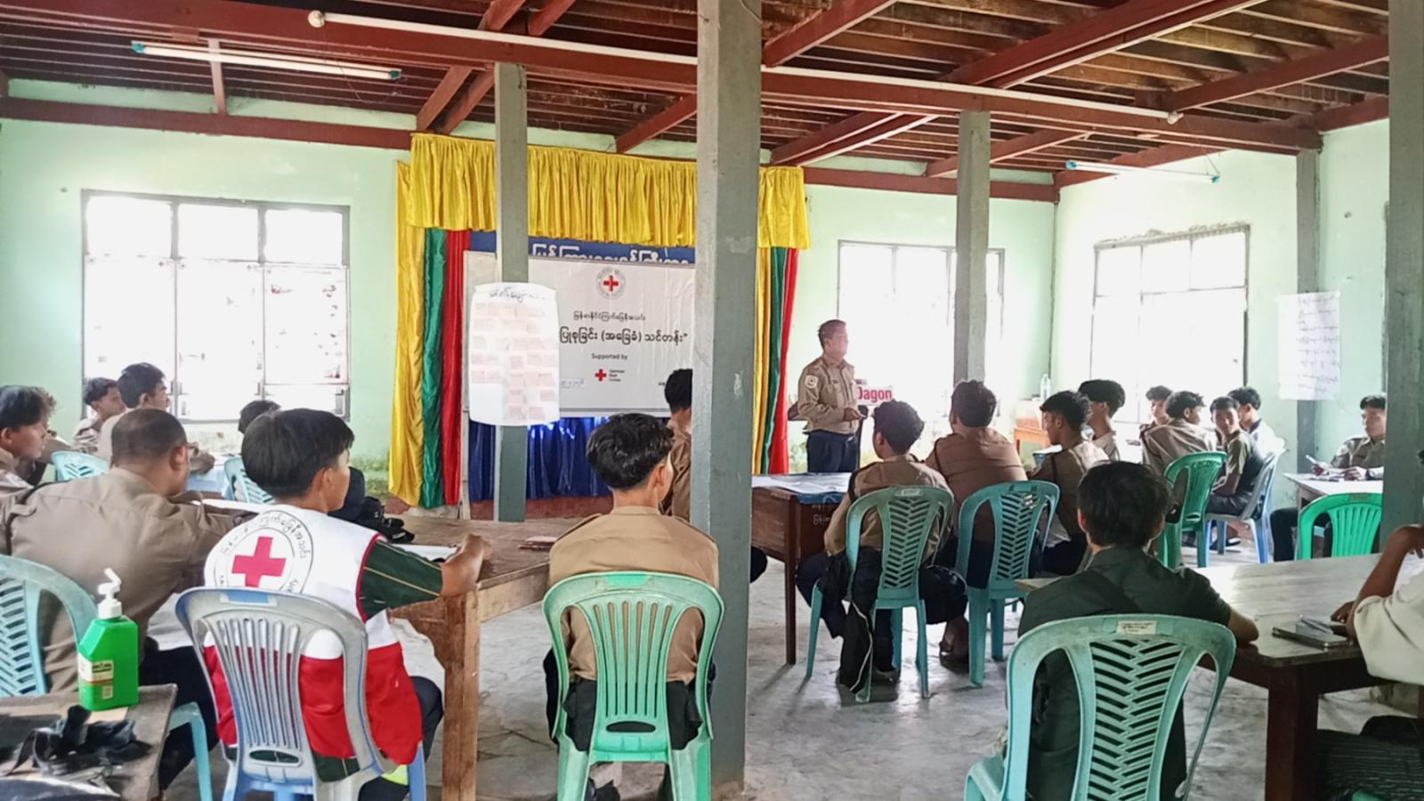 အဆိုပါသင်တန်းတွင် ဒဂုံမြို့သစ် (တောင်ပိုင်း) မြို့နယ် မြို့နယ်ကြက်ခြေနီတပ်ဖွဲ့ မြို့နယ်တပ်ဖွဲ့မှူး ဦးဆန်းလွင်ဦးက ကြက်ခြေနီအသင်းဖြစ်ပေါ်လာပုံ၊ အသင်းအခြေခံမူများ၊ ရည်ရွယ်ချက်၊ ကြက်ခြေနီအသင်း၏ ဆောင်ရွက်လျှက်ရှိသောလုပ်ငန်းများအား သင်တန်းသားများလွယ်ကူစွာသိရှိမှတ်သားနိုင်ရန် ရှင်းလင်းပြောကြားပြီး မြို့နယ်ကြက်ခြေနီတပ်ဖွဲ့ တပ်ခွဲမှူး ဦးကျော်မင်းထွန်းက ရှေးဦးပြုစုခြင်းအခြေခံသဘောတရားခေါင်းစဉ်၊ တပ်စုမှူး ဦးအောင်သီဟက လူနာဆန်းစစ်ခြင်းခေါင်းစဉ်၊ မြို့နယ်ကြက်ခြေနီတပ်ဖွဲ့ အမျိုးသမီးတပ်ခွဲမှူး ဒေါ်ဥမ္မာတင်က စိတ်ပိုင်းဆိုင်ရာ ရှေးဦးပြုစုခြင်းစသည့် ခေါင်းစဉ်များဖြင့် လက်တွေ့သရုပ်ပြသင်ကြားပေးကြကြောင်း သိရသည်။