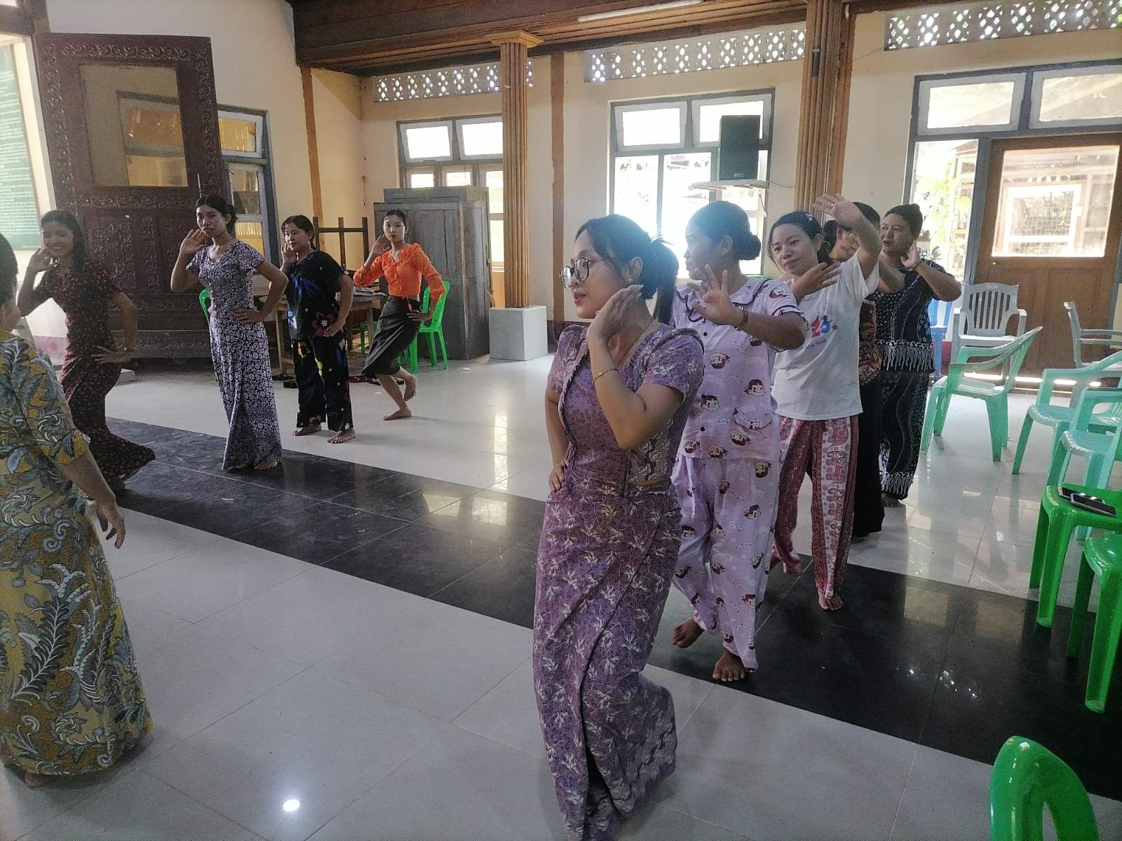 ယခုအခါတွင် ဖျော်ဖြေရေးယိမ်း (၅) ယိမ်းမှ လှပျိုဖြူများမှ မြန်မာ့ရိုးရာသင်္ကြန်တွင် ညီညာစွာဖျော်ဖြေနိုင်ယိမ်းအကများ လေ့ကျင့်လျက်ရှိနေကြကြောင်း သိရသည်။