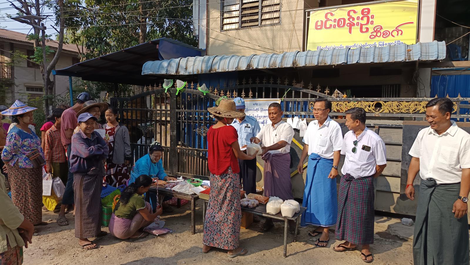 ဧရာဝတီတိုင်းဒေသကြီး၊ မြန်အောင်ခရိုင်၊ မြန်အောင်မြို့နယ် ဆီကုန်သည်နှင့်ဆီလုပ်ငန်းရှင်များအသင်း ဆီကိုယ်စားလှယ်(၆)ဦးက စားအုန်းဆီဝယ်ယူခွင့်စာအုပ်ဖြင့် သတ်မှတ်ရည်ညွှန်းဈေးနှုန်းဖြင့် အိမ်ထောင်စုတစ်စုလျှင် ၅၀ ကျပ်သားနှုန်း တစ်လနှစ်ကြိမ် ပုံမှန်ရောင်းချပေးလျက်ရှိရာ ယနေ့နံနက်ကမြန်အောင်မြို့ အမှတ်(၁)ရပ်ကွက်၌ စားအုန်းဆီတစ်ပိဿာ(၇၂၇၄)ကျပ်၊ ဆန်တစ်ပြည်(၂၀၀၀)ကျပ်၊ ကြက်ဥတစ်လုံး ၃၀၀ ကျပ်နှုန်းဖြင့် ရောင်းချပေးမှုအား မြို့နယ်စီမံခန့်ခွဲရေးနှင့် အုပ်ချုပ်ရေးကော်မတီအဖွဲ့ဝင် ဦးသန်းစိုးဦး၊ ဦးမြင့်နိုင်၊ တိုင်းဒေသကြီး ဆီကုန်သည်နှင့်ဆီလုပ်ငန်းရှင်များအသင်း၊ စီမံခန့်ခွဲမှုကော်မတီအဖွဲ့ဝင် ဦးမင်းဇော်ဦး၊ မြို့နယ်စားသုံးသူရေးရာဦးစီးဌာနနှင့် ဌာနဆိုင်ရာတာဝန်ရှိသူများ၊ ရပ်မိရပ်ဖတို့က ကြည့်ရှုအားပေးကူညီဆောင် ရွက်ပေးခဲ့ကြသည်။