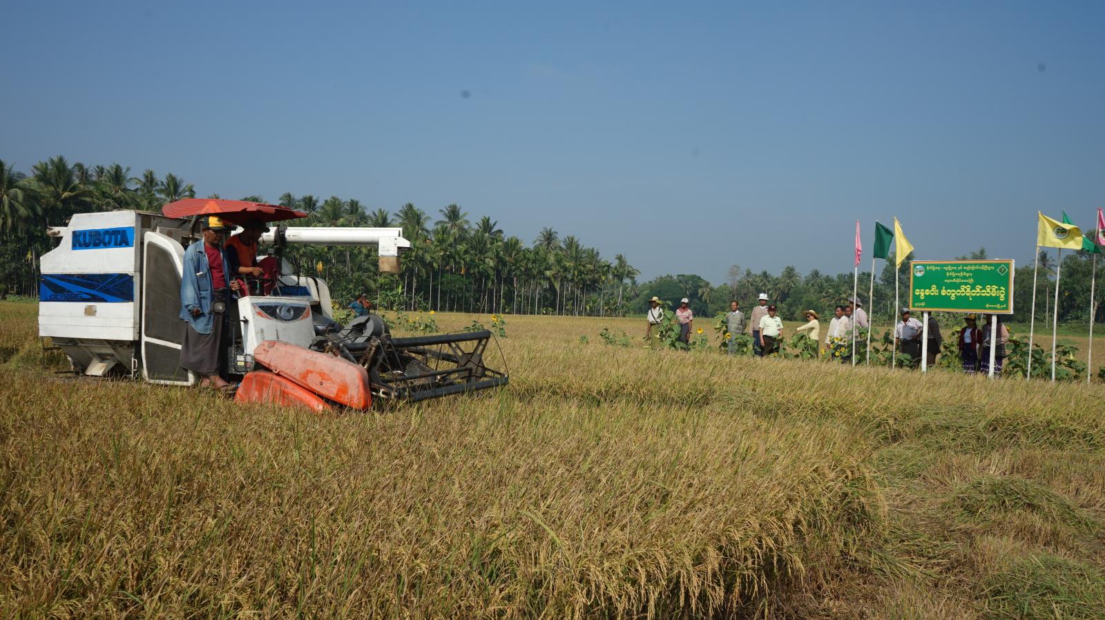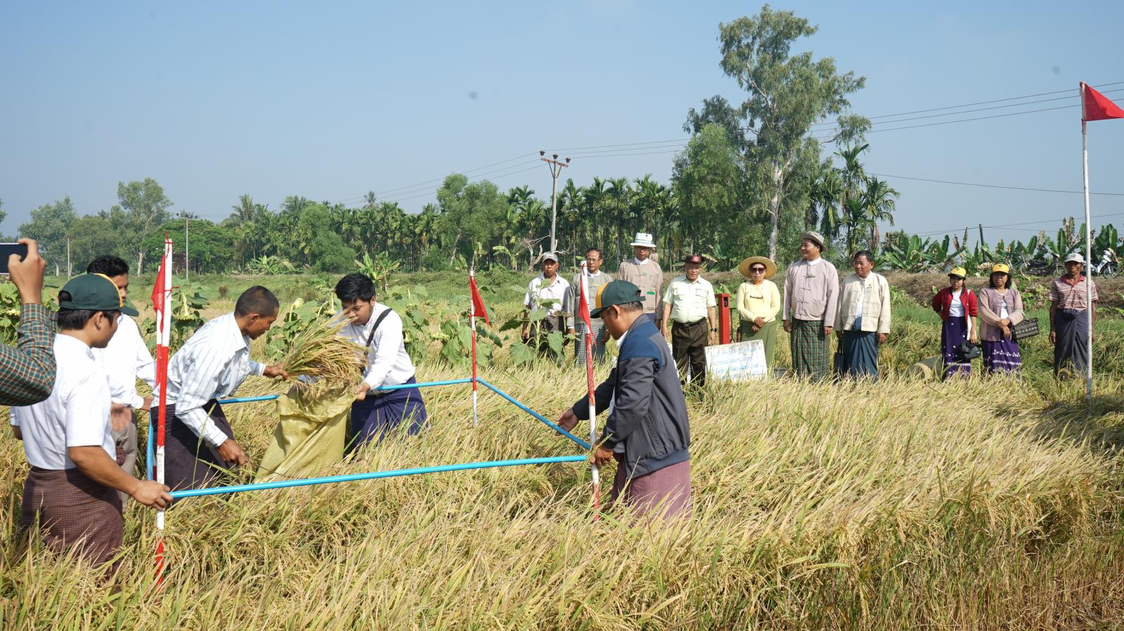 ဧရာဝတီတိုင်းဒေသကြီး၊ ဖျာပုံခရိုင်၊ ဘိုကလေးမြို့နယ်၊ သကံဝကျေးရွာအုပ်စု၊ ကွင်းအမှတ်(၇၀၈)၊ ဦးပိုင်အမှတ်(၉၀/၂)၊ ဧရိယာ (၅)ဧကရှိ တောင်သူ ဦးမြင့်ဝေ၏ လယ်ယာမြေတွင် မျိုးစေ့ချကိရိယာ (Drum Seeder) ဖြင့် စိုက်ပျိုးထားခဲ့သော ထိုင်းဘေးကြား စပါးမျိုးကွဲအား မတ် ၃၀ ရက်နေ့နံနက်(၉)နာရီ အချိန်တွင် စံကွက်ရိတ်သိမ်းပွဲ ကျင်းပခဲ့သည်။