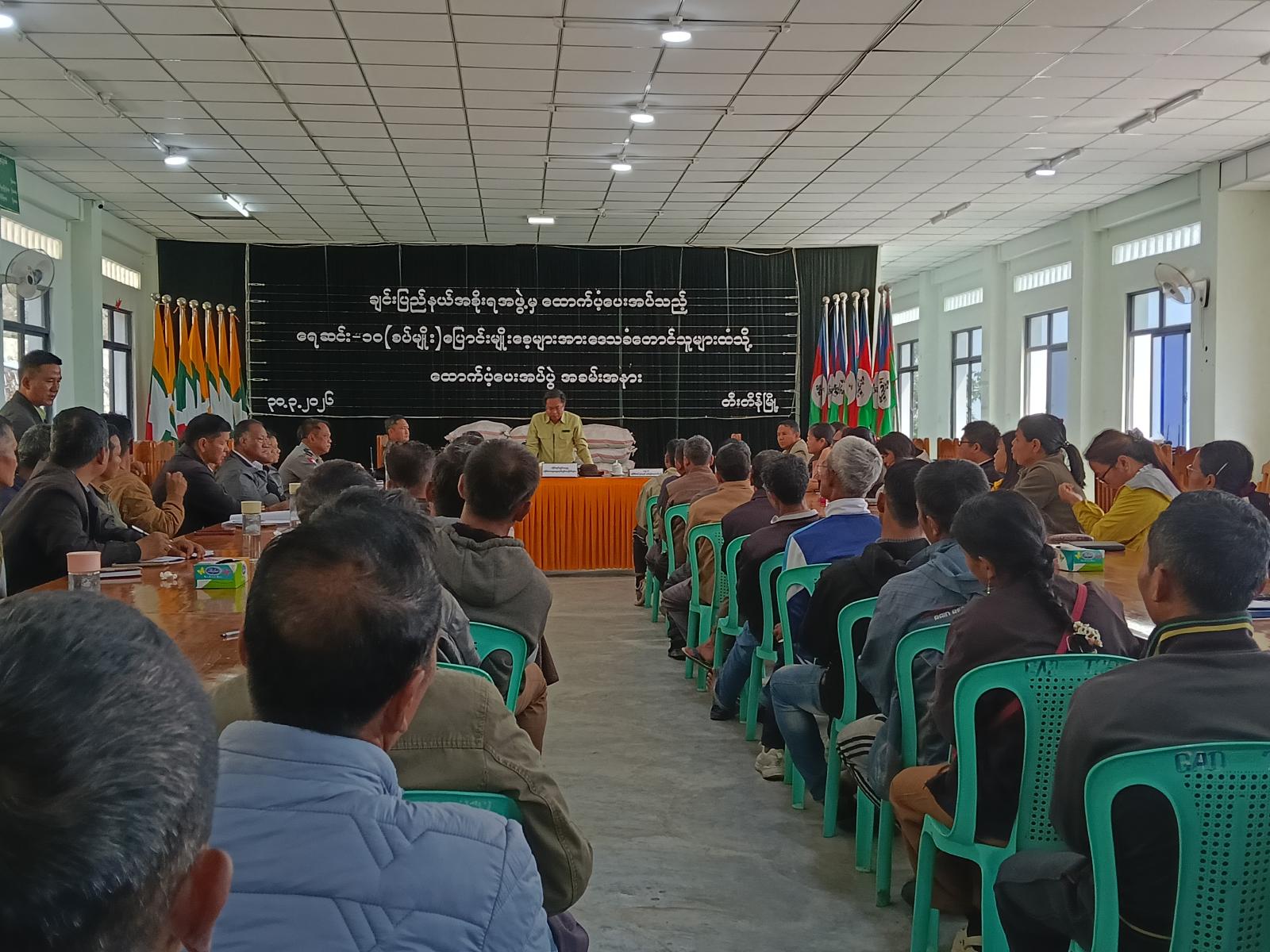 ချင်းပြည်နယ်တီးတိန်မြို့၌ ချင်းပြည်နယ်အစိုးရအဖွဲ့၏ အစီအစဉ်ဖြင့် ဒေသနှင့်ကိုက်ညီသောအစေ့ထုတ်ပြောင်း (ရေဆင်း-၁၀)စပ်မျိုးများအား ဒေသခံတောင်သူများထံ ပေးအပ်ပွဲအခမ်းအနားကို ယမန်နေ့နံနက်ပိုင်းက ခရိုင်အထွေထွေအုပ်ချုပ်ရေးဦးစီးဌာန အစည်းအဝေးခန်းမတွင် ပြုလုပ်သည်။
