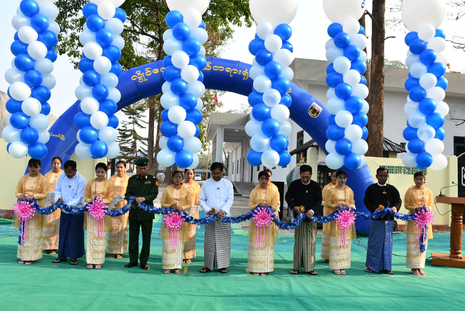 ဦးစွာ ပြည်နယ်ဝန်ကြီးချုပ်၊ ဒေသကွပ်ကဲရေးမှူး၊ ပြည်နယ်တရားသူကြီးချုပ်၊ သယံဇာတ ရေးရာဝန်ကြီးနှင့် ပြည်နယ်တရားရေးဦးစီးမှူးတို့က လွိုင်ကော်ခရိုင်၊ မြို့နယ်တရားရုံးသစ်အား ဖဲကြိုးဖြတ်၍ ဖွင့်လှစ်ပေးသည်။
