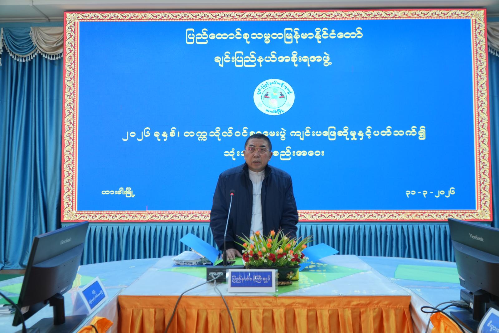 ၂၀၂၆ ခုနှစ်၊ တက္ကသိုလ်ဝင်စာမေးပွဲ ကျင်းပဖြေဆိုမှုနှင့်ပတ်သက်၍ သုံးသပ်အစည်းအဝေးကို ယမန်နေ့ နံနက် ၁၀ နာရီအချိန်က ဟားခါးမြို့၊ ချင်းပြည်နယ်အစိုးရအဖွဲ့ရုံး အစည်းအဝေးခန်းမ၌ကျင်းပရာ ချင်းပြည်နယ်ဝန်ကြီးချုပ် ဒေါက်တာဝုန်ဆွန်းထန်၊ ပြည်နယ်ဝန်ကြီးများ၊ ပြည်နယ်ဥပဒေချုပ်၊ ပြည်နယ်အစိုးရအဖွဲ့အတွင်းရေးမှူး၊ ပြည်နယ်၊ ခရိုင်၊ မြို့နယ်ပညာရေးမှူးများ၊ ခရိုင်၊ မြို့နယ်အုပ်ချုပ်ရေးမှူးများနှင့် အခြေခံပညာအထက်တန်းကျောင်းအုပ်ကြီးများ တက်ရောက်ကြသည်။