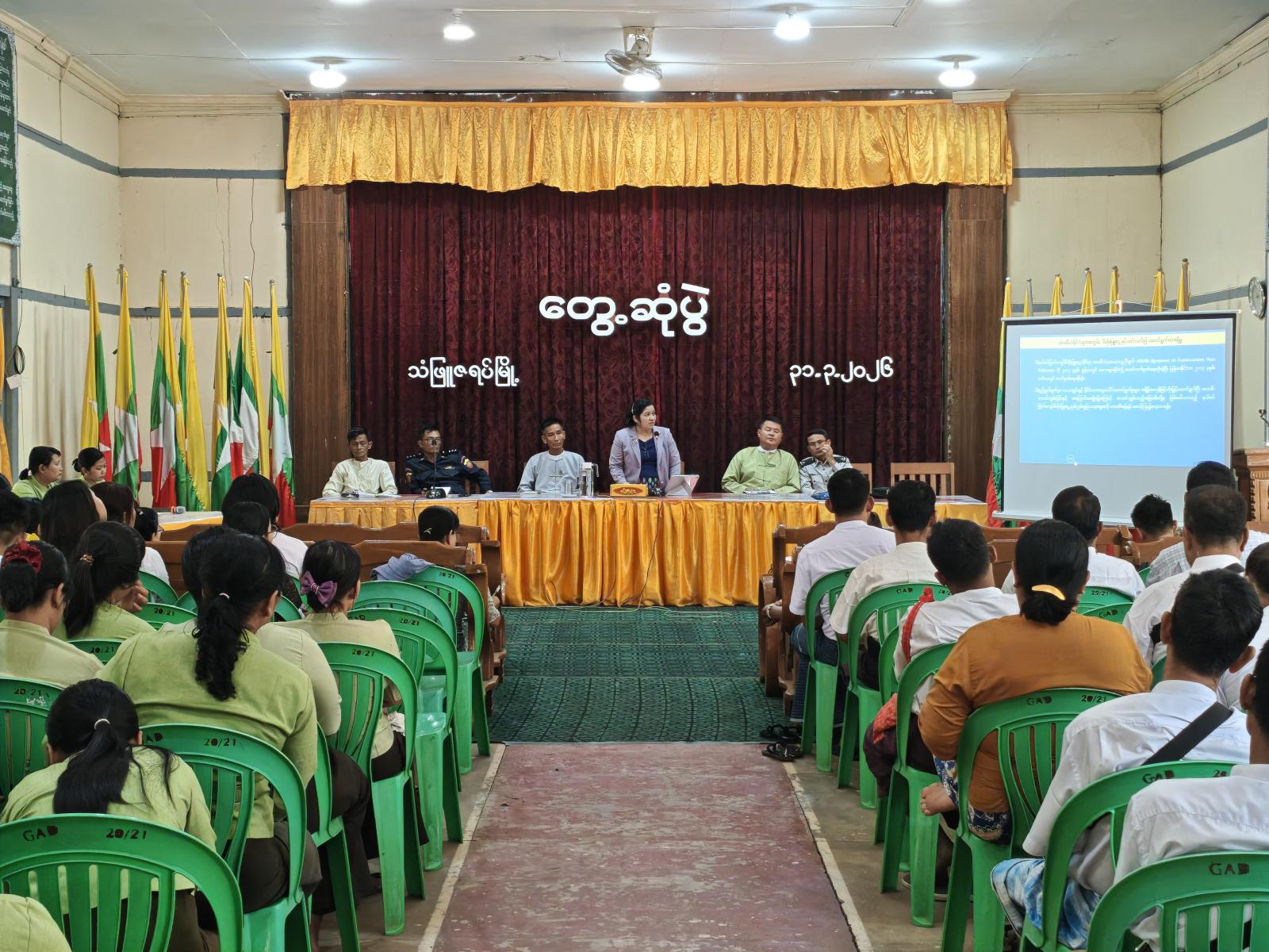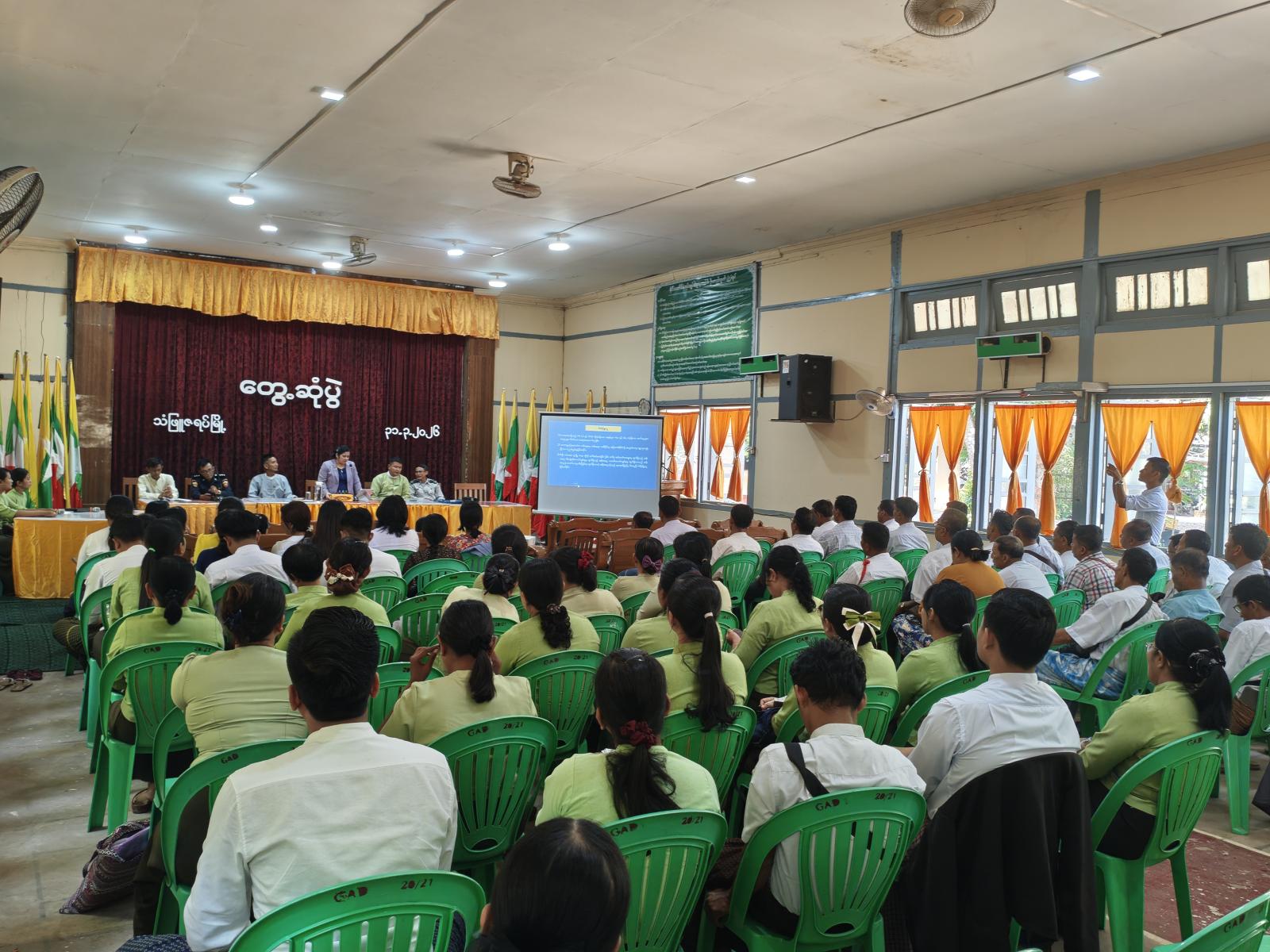 ထို့နောက် မြို့နယ်မီးသတ်ဦးစီးဌာန မြို့နယ်ဦးစီးမှူး ဦးအောင်ကျော်ထွေးက မီးဘေးအန္တရာယ်ကြိုတင်ကာကွယ်ရေးနှင့် Fire Hotspot လျှော့ချရေးကို ဆွေးနွေးပြောကြားပြီး၊ မြို့နယ်စိုက်ပျိုးရေးဦးစီးဌာန၊ မြို့နယ်ဦးစီးမှူး ဦးကျင်သိန်းက ရိုးပြတ်များမီးရှို့ခြင်းမှ ကာကွယ်တားဆီးရေးဆိုင်ရာ အကြောင်းအရာများကို ရှင်းလင်းပြောကြားပြီး တောမီးနှင့်အခြားမီးလောင်ကျွမ်းမှုအား Video Clip ပြသခဲ့ပြီးနောက် မီးခိုးမြူငွေ့လျှော့ချရေးဆိုင်ရာ အသိပညာပေး လက်ကမ်းစာစောင်များ ဖြန့်ဝေပေးခဲ့ကြောင်း သိရသည်။