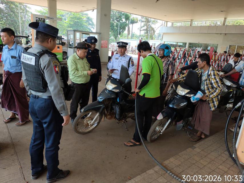 မွန်ပြည်နယ်၊ ကျိုက်ထိုခရိုင်၊ ကျိုက်ထိုမြို့နယ်တွင် “စုံ” ရက် “မ” ရက် ခွဲခြား၍ မော်တော်ယာဉ်များ၊ မော်တော်ဆိုင်ကယ်များ မောင်းနှင်စေခြင်း ထုတ်ပြန်ကြေညာချက်အား ပြည်သူများမှ လိုက်နာဆောင်ရွက်နိုင်စေရန် ကွင်းဆင်းစစ်ဆေးကိုယမန်နေ့ နံနက်ပိုင်းကတောင်သူစုရပ်ကွက်၊ ကျိုက်ထီးရိုးလမ်းစုံ၌ ဆောင်ရွက်ခဲ့သည်။