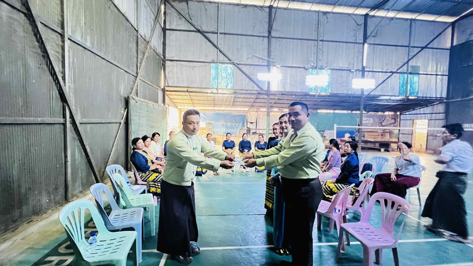 ထို့နောက် မြို့နယ်စီမံခန့်ခွဲရေးနှင့်အုပ်ချုပ်ရေးကော်မတီဥက္ကဋ္ဌ မြို့နယ်အုပ်ချုပ်ရေးမှူးနှင့် မြို့နယ်အမျိုးသမီးရေးရာအဖွဲ့ဥက္ကဋ္ဌတို့သည် မြို့နယ်ထွေ/အုပ်ဝန်ထမ်းများဖြစ်သည့် မြို့နယ်နယ်နိမိတ်ပြင်ပနေသူများ၊ နာတာရှည်မိဘများ၊ ပြည်သူ့စစ်မှုထမ်းတာဝန်ထမ်းဆောင်နေသည့် မြို့နယ်ထွေ/အုပ်ဝန်ထမ်း၏ သား/သမီးများအတွက် ထောက်ပံ့ငွေပေးအပ်ခဲ့ကြောင်း သိရသည်။