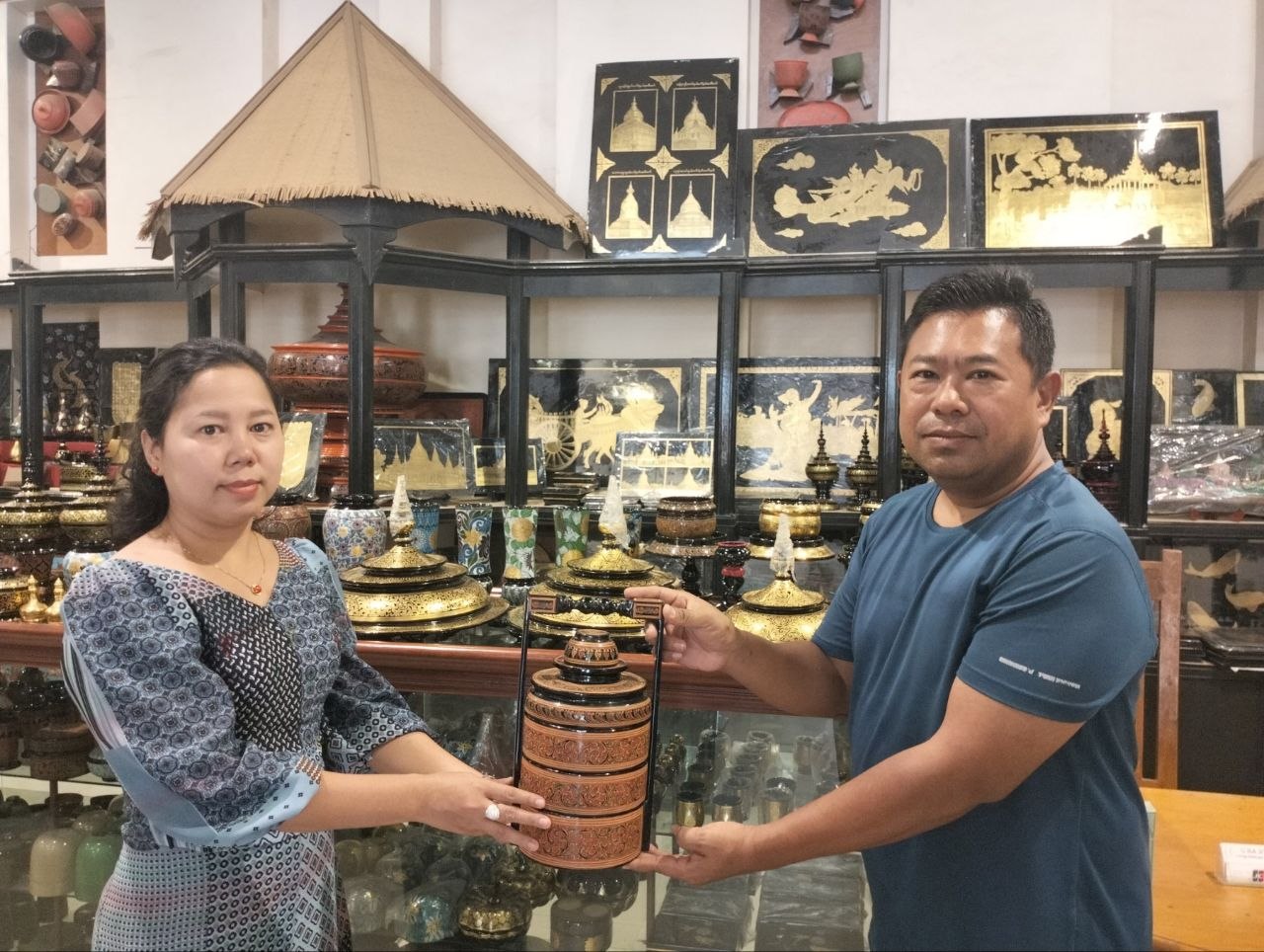 မန္တလေးတိုင်းဒေသကြီး ညောင်ဦးခရိုင် ပြန်ကြားရေးနှင့်ပြည်သူ့ဆက်ဆံရေးဦးစီးဌာန၊ရှိ ဒေသန္တရပြတိုက်ငယ်အတွင်း ပြသထားနိုင်ရန် ပုဂံဒေသထွက် ယွန်းသုံးဆင့်ဆွမ်းချိုင့်နှင့် ယွန်းပန်းအိုးကို ဧပြီ ၂ ရက် နံနက် ၈ နာရီက ဦးဘငြိမ်းယွန်းအရောင်းဆိုင်က လှူဒါန်းသည်။