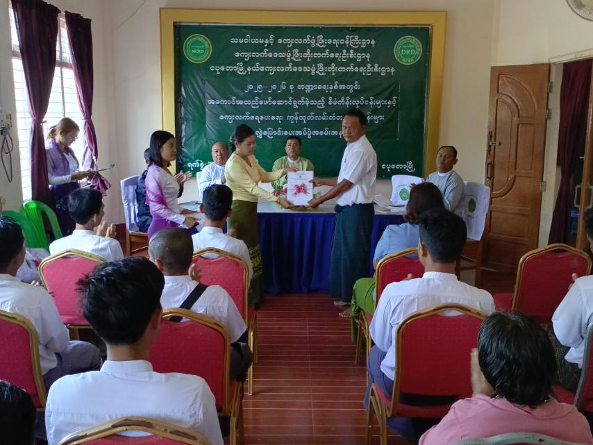 ဆက်လက်ပြီး မြို့နယ်စီမံခန့်ခွဲရေးနှင့်အုပ်ချုပ်ရေးကော်မတီဥက္ကဋ္ဌနှင့်တက်ရောက်လာကြသော မြို့နယ်ဌာနဆိုင်ရာများက ကျေးရွာ (၂၂)ရွာမှ ကျေးလက်ရေပေးဝေရေး လုပ်ငန်းကော်မတီဝင်များအား လုပ်ငန်းလွှဲပြောင်းမှတ်တမ်းလွှာကိုပေးအပ်ရာ ကျေးရွာကိုယ်စားရပ်မိရပ်ဖတစ်ဦးက ကျေးဇူးတင်စကား ပြန်လည်ပြောကြားပြီး စုပေါင်းမှတ်တမ်းတင် ဓာတ်ပုံရိုက်ကူးခဲ့ကြောင်း သိရသည်။